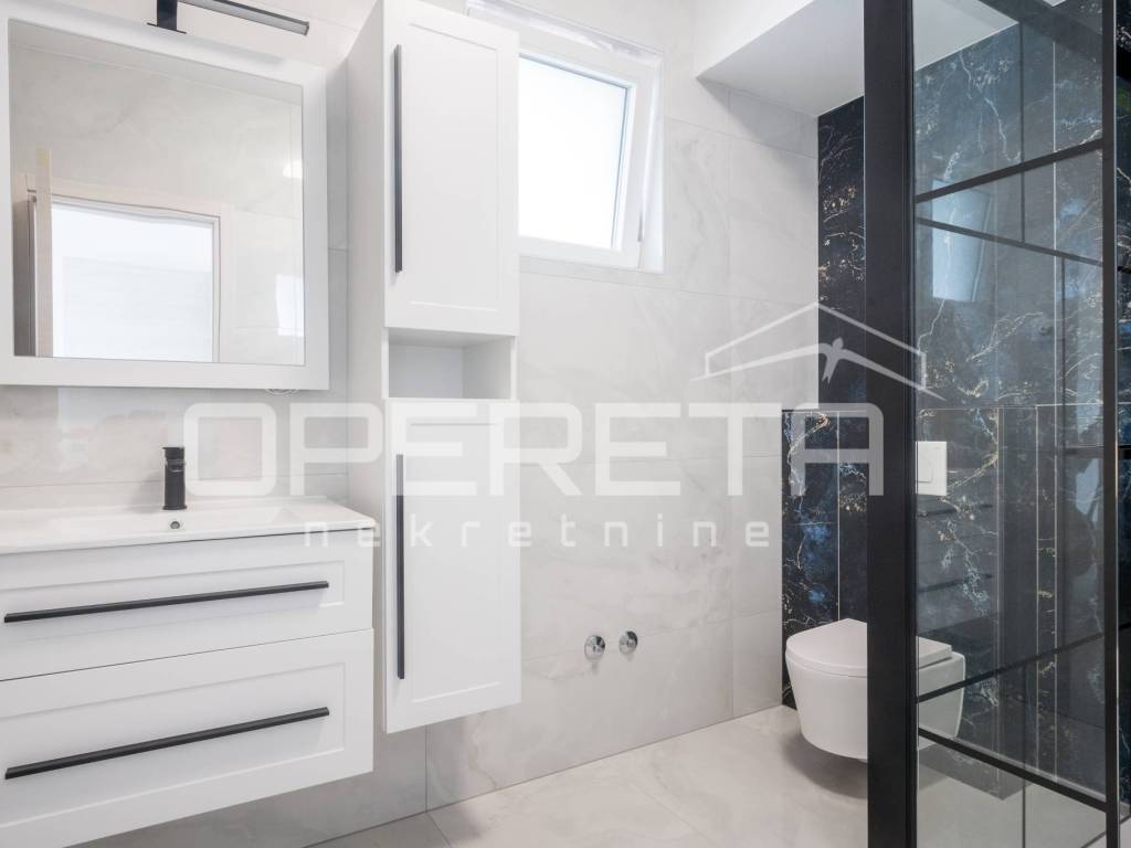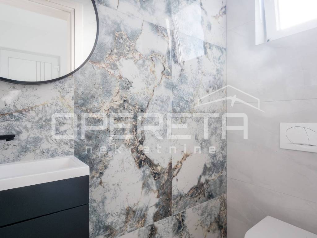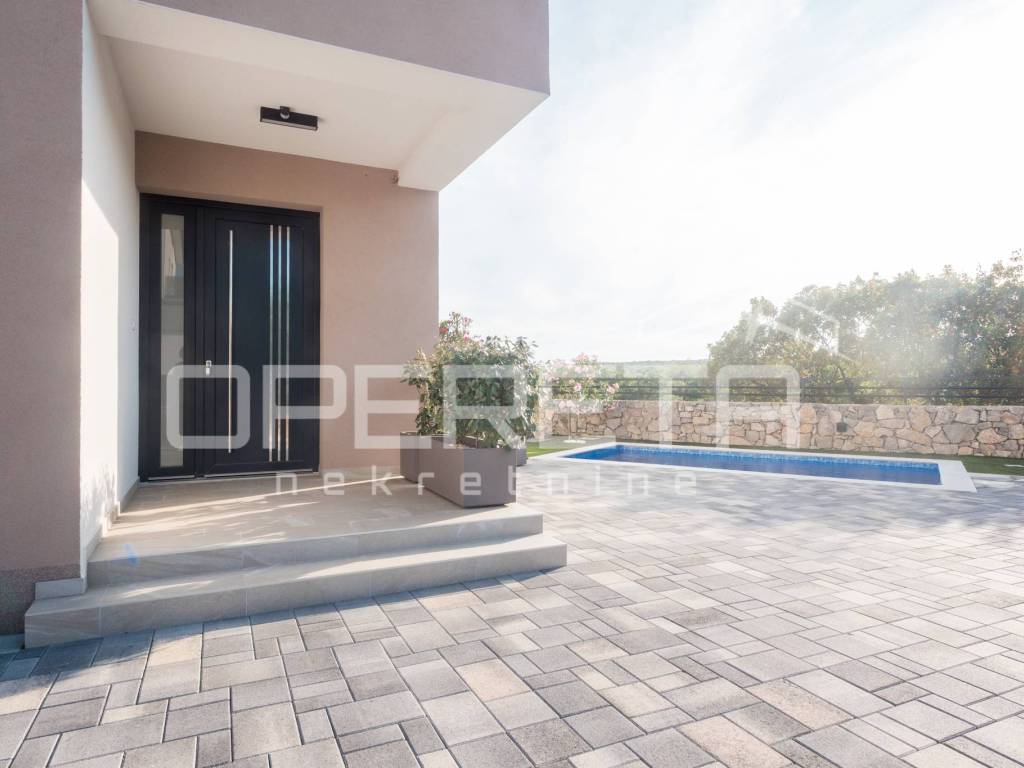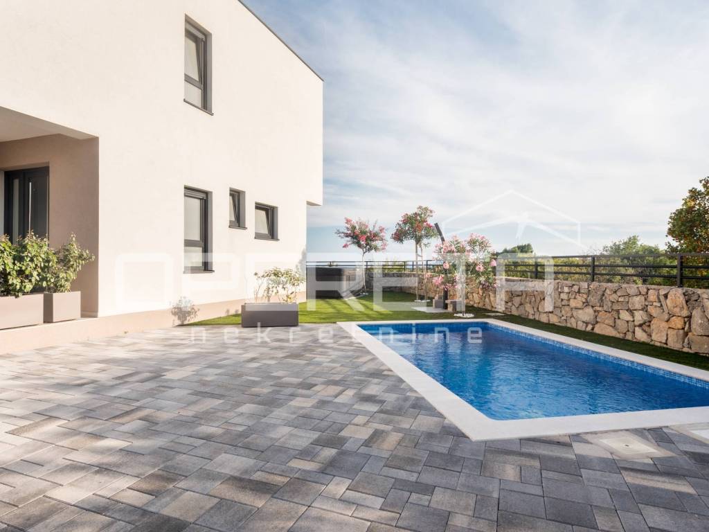 This modern house is located in a quiet and sought-after location, near one of the most attractive places on the island of Krk. The nearest town and beach are only a five-minute drive away.