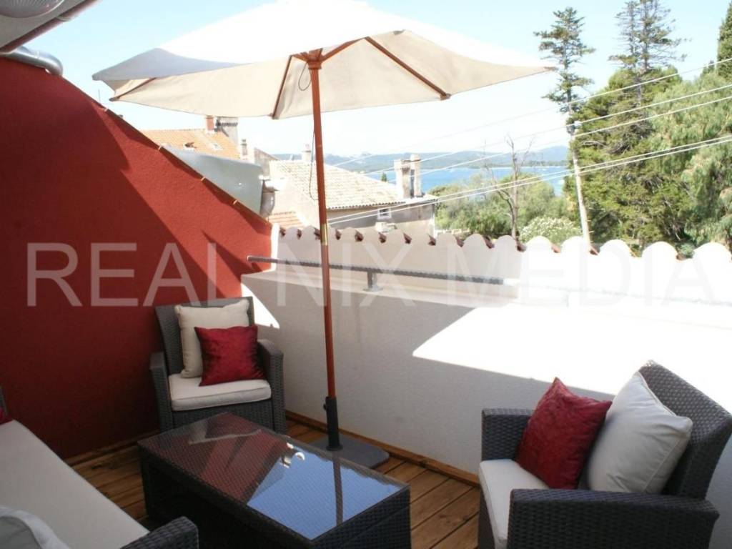 Zbog povišenog položaja, iz loggie se pruža pogled na more i park. S obzirom da kuća ima 2 ulaza, ima i više opcija korištenja; kao jedna stambena jedinica ili kao 2 stambene jedinice.