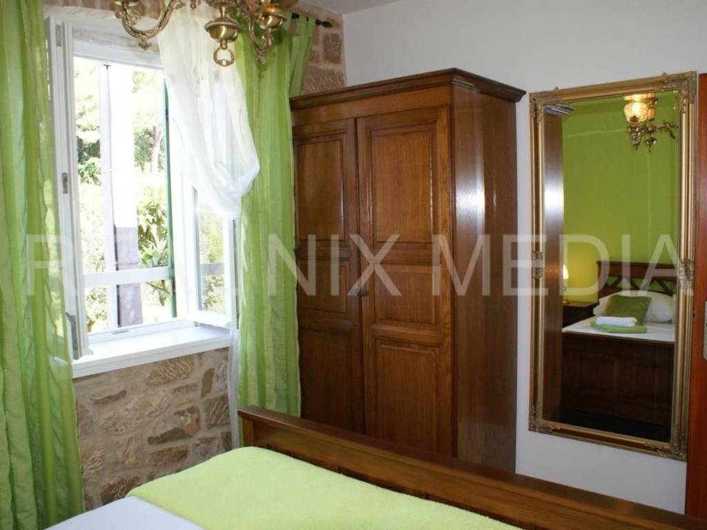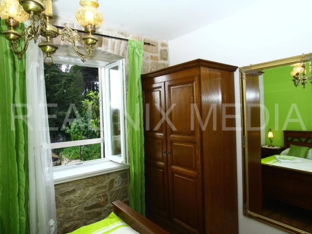 Kuća se prodaje kompletno namještena. Velik dio namještaja je rađen po mjeri i u rustikalnom mediteranskom stilu.