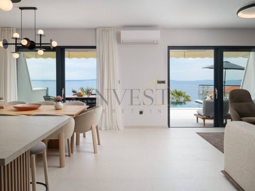 The villa consists of 4 spacious rooms and 5 fully equipped bathrooms, perfect for family life or tourist purposes. The interior is luxuriously decorated with carefully selected furniture and a modern, equipped kitchen. Large glass walls allow plenty of natural light and offer a beautiful view of the sea, while the spacious terrace offers an ideal place to relax and enjoy the surroundings.