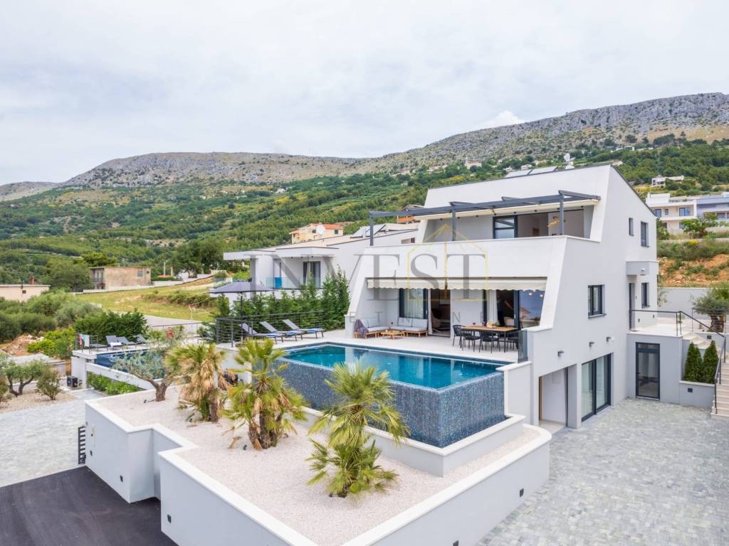 A modern villa for sale in Podstrana, located in an exclusive neighborhood surrounded by luxury villas, only 1000 meters from the sea. This impressive property offers supreme comfort and elegance, ideal for those looking for privacy and luxury in an extraordinary location.