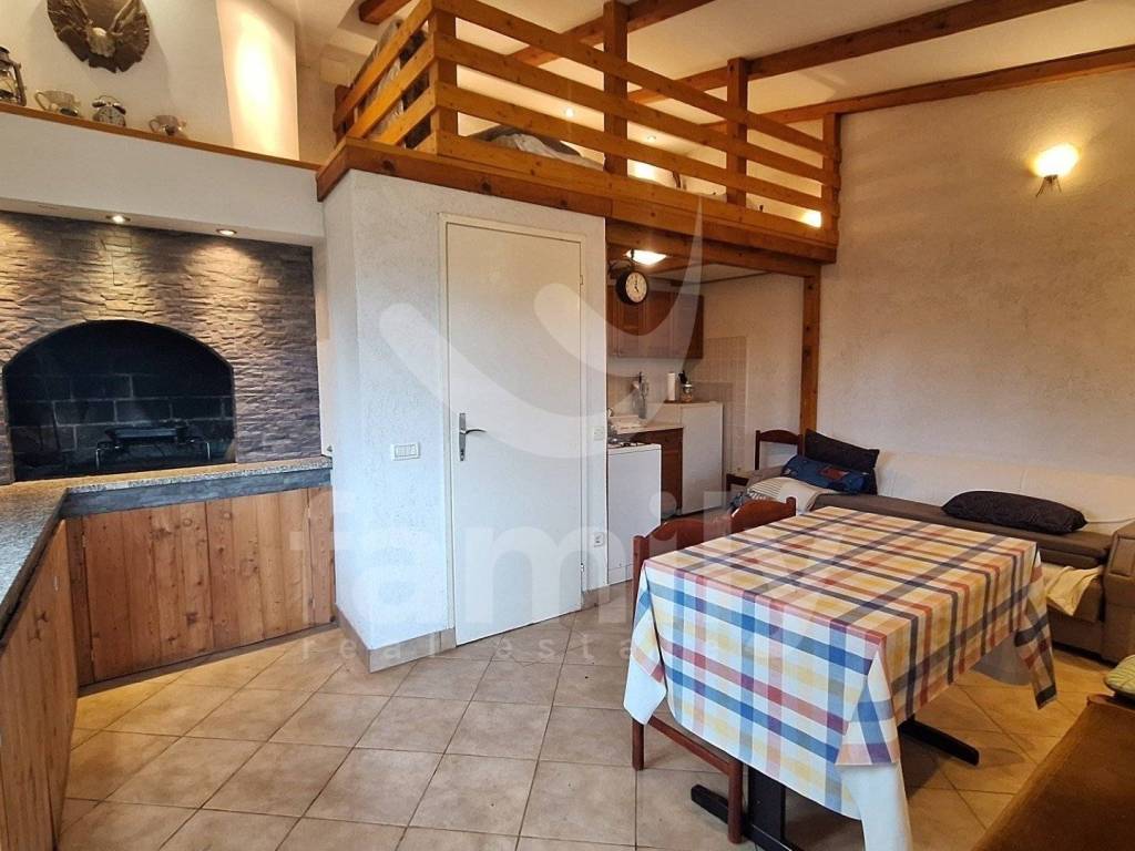 Two legalized single-storey houses are for sale located in a quiet and pleasant location not far from Pula. Each house has 30 m² of living space and is ideal for vacation, tourist rental or peaceful life in nature. The houses are located on a fenced plot of 415 m², with a secured access road. They are built of brick with thermal insulation, have wooden windows and tiled floors. One house consists of a living room, kitchen, gallery with a bed and a toilet and heating is provided by a wood-burning stove, while the other building is currently used as a storage room. The property has electricity and water connections, and the quiet location provides privacy and relaxation, with quick access to Pula and all necessary amenities.