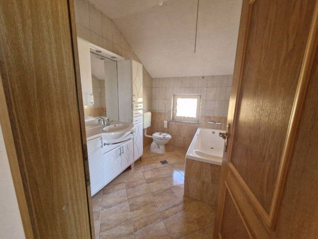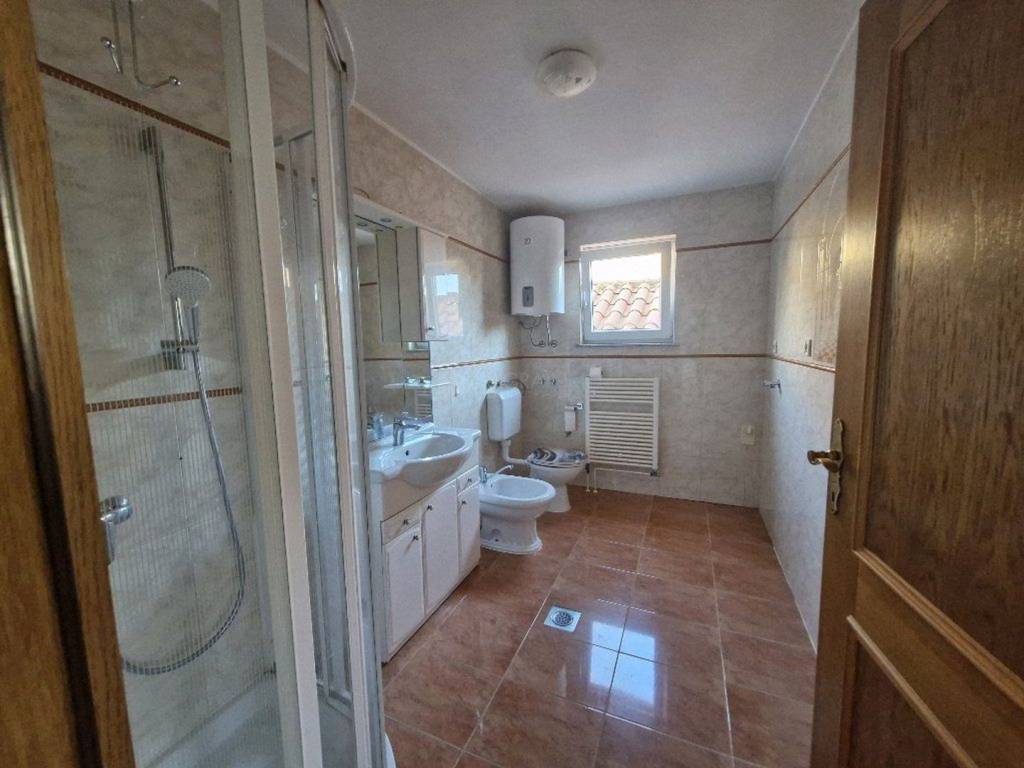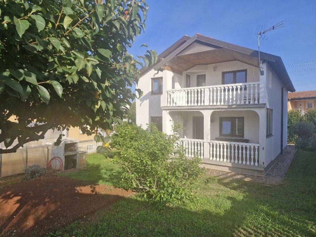 Finida is ideally situated just 2 km from the centre of Umag and its beautiful beaches. This superb location provides easy access to all the town's attractions while offering peace and privacy in a serene setting. The house itself is spread across three levels. The fully finished lower ground floor features a separate apartment with its own entrance, ideal for guests or rental purposes. The elevated ground floor includes a spacious living room with a kitchen and dining area, a terrace, a bathroom, and a bedroom—all designed for comfortable family living. On the top floor, you'll find three bedrooms, another terrace, and a bathroom, with the potential to convert this level into a self-contained living space, adding flexibility for various uses.