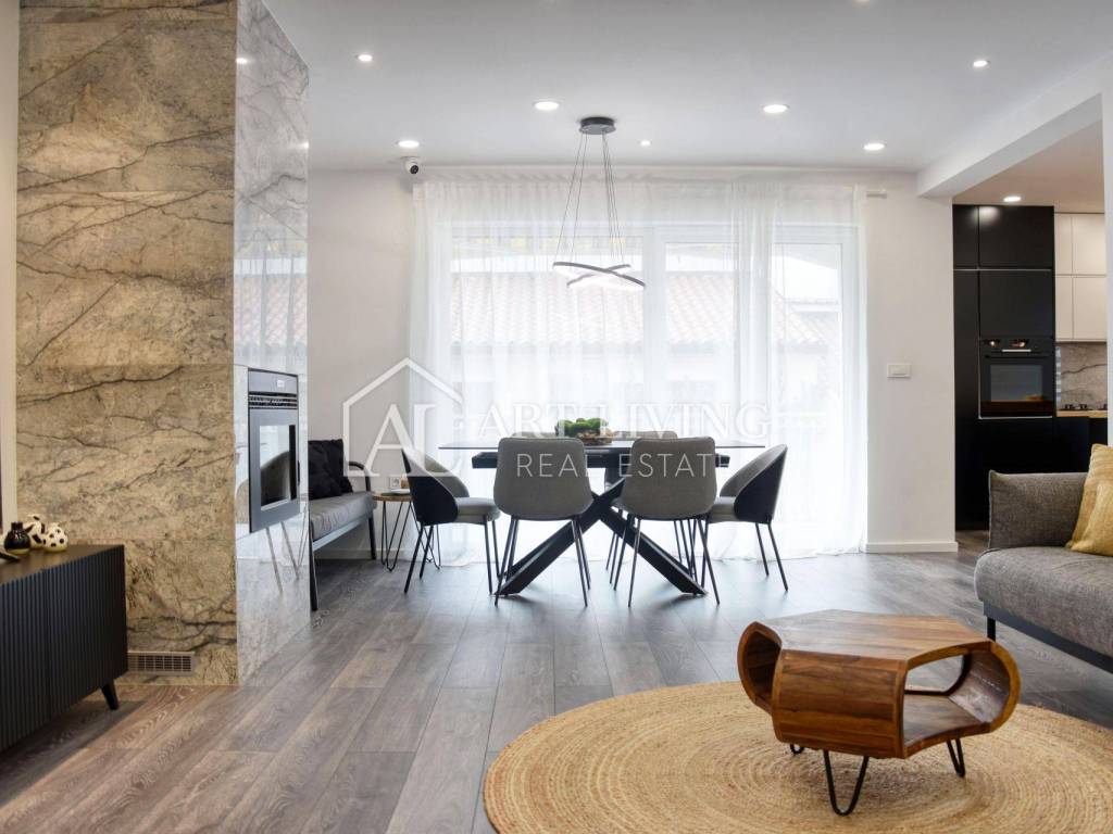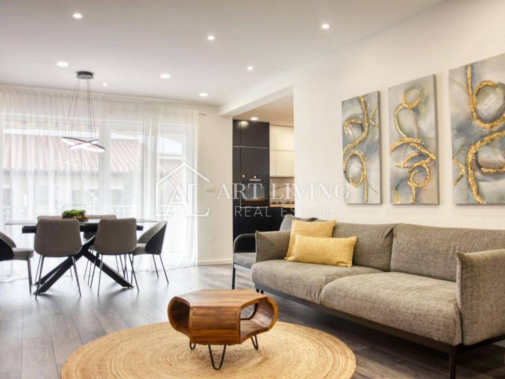 In an exceptionally attractive location in Poreč, just 800 meters from the sea and in close proximity to the town center, this high-quality and spacious apartment with a total area of 100 m² is situated. It is located in a მშვიდ, neat, and pleasant neighborhood that offers the perfect balance between privacy and proximity to all essential amenities – shops, schools, kindergarten, restaurants, promenades, and beaches.
