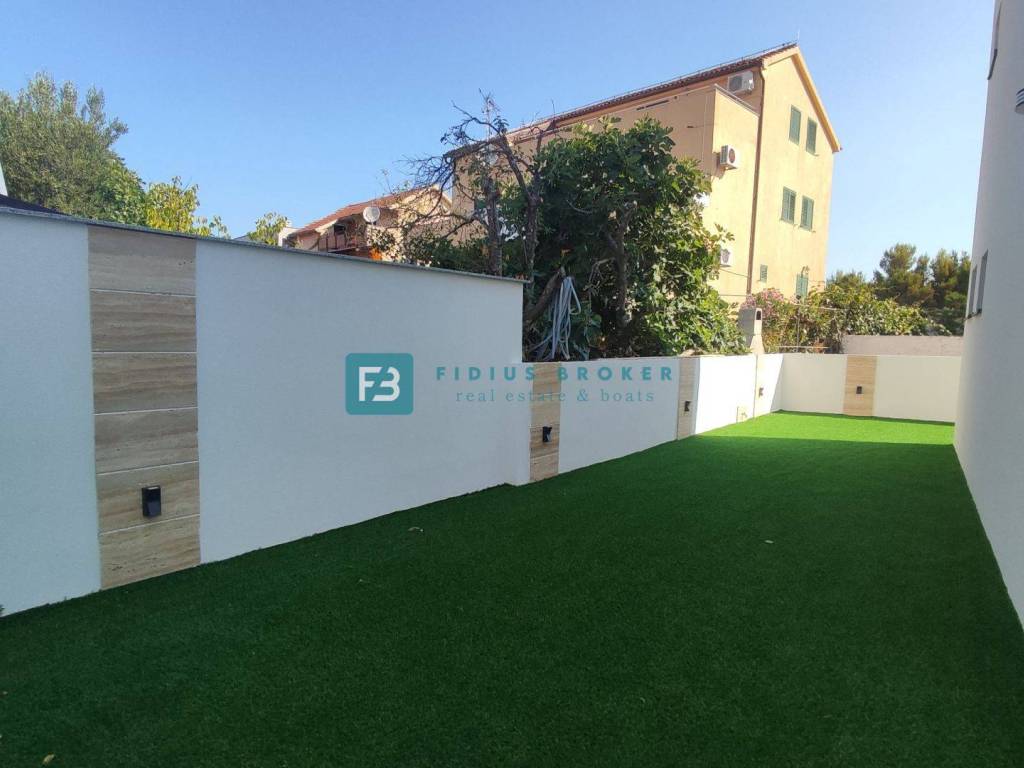 A newly built semi-detached house located in a quiet and well-maintained part of town, surrounded by family houses. It is located in a dead end street, which ensures peace and privacy. At a distance of only 300 m from the beach and 1300 m from the city center, it allows you to get away from the city crowds and stress, and yet you are only a few minutes away from all the amenities that Vodice has to offer. The advantage of this property is the three-story layout that provides additional privacy and makes the living space more functional and pleasant. In addition, each unit comes with its own yard and two parking spaces, which ensures an additional level of practicality and comfort.