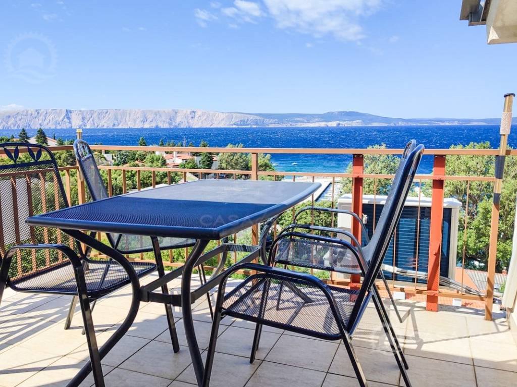 Two apartments for sale on the same floor near Novi Vinodolski, just 100 meters from the sea. They are located on the second floor of a building constructed in 2006. The total area is 84 m². Each apartment has its own living room with a kitchen and dining area, one bedroom, a bathroom, and a gallery of 8 m². The apartments have separate entrances, allowing them to be used as two independent units. Both apartments are equipped with new air conditioning units and new awnings, and each includes one parking space. The apartments offer a panoramic sea view. Documentation is in order – title deed, occupancy permit, and condominium ownership.