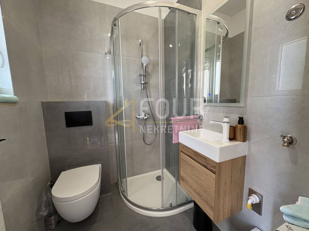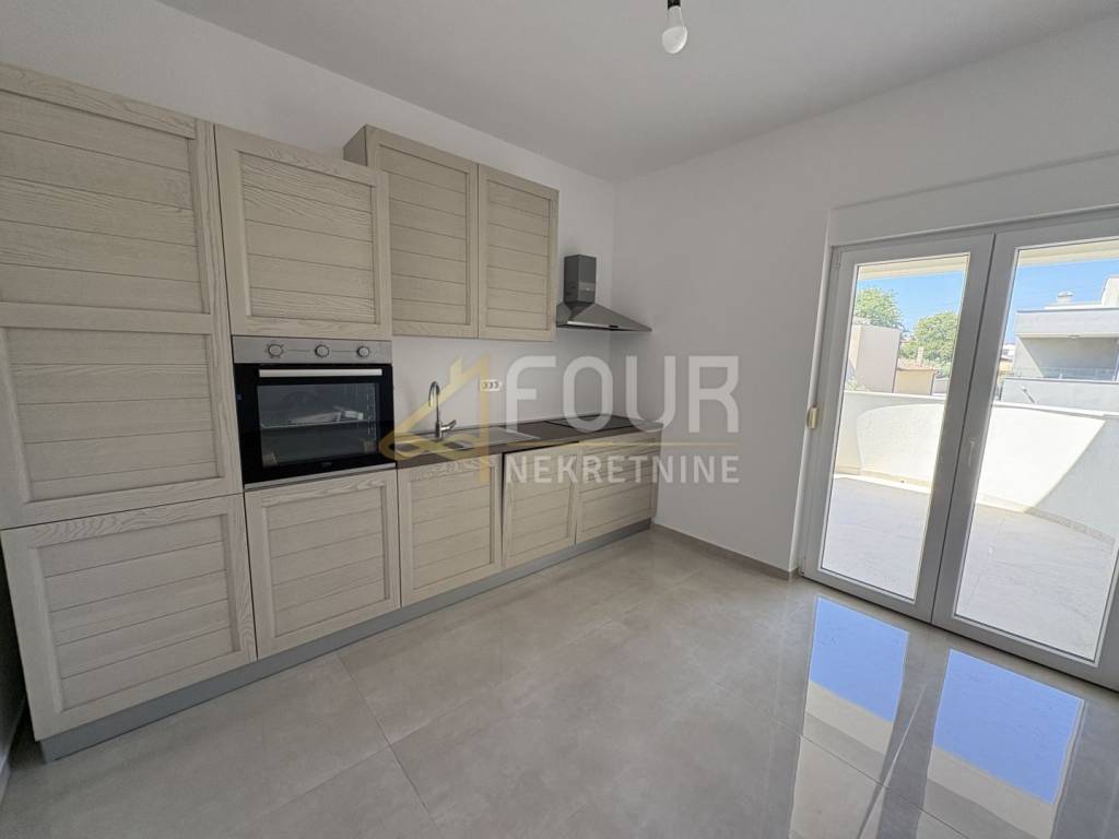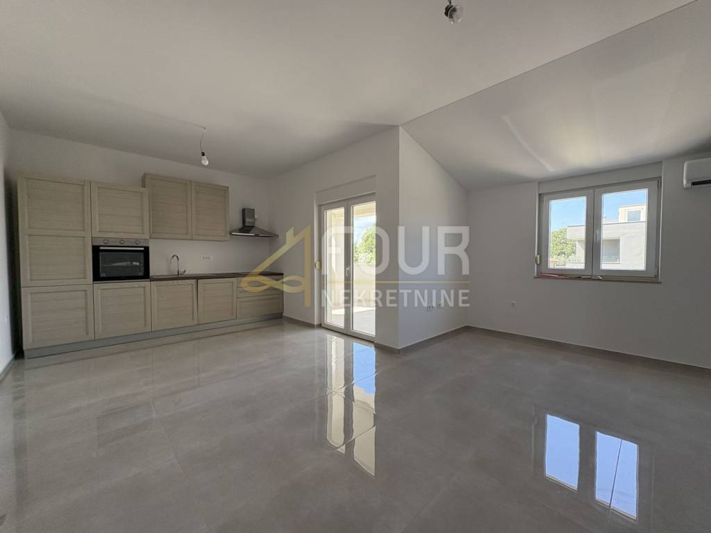 A modern and spacious apartment is on offer - a floor in a new building from 2025! The area of the apartment is 91.13 m2, with a functional layout including an entrance hallway, three bedrooms, two bathrooms, two storage rooms, a spacious living room connected to the kitchen and dining room, and access to a partially covered terrace. The south orientation ensures plenty of natural light throughout the day, with a slight sea view from the terrace and the apartment. Special attention has been paid to the quality of construction - the building has a facade with 15 cm of insulation, PVC joinery with insect screens, video surveillance, intercom, and alarm system. Heating is provided through floor heating with a heat pump. The apartment comes with two parking spaces, as well as preparation for an electric car charging station. The location is very convenient - only 3 km from the sea and approximately 8.5 km from the center of Pula.