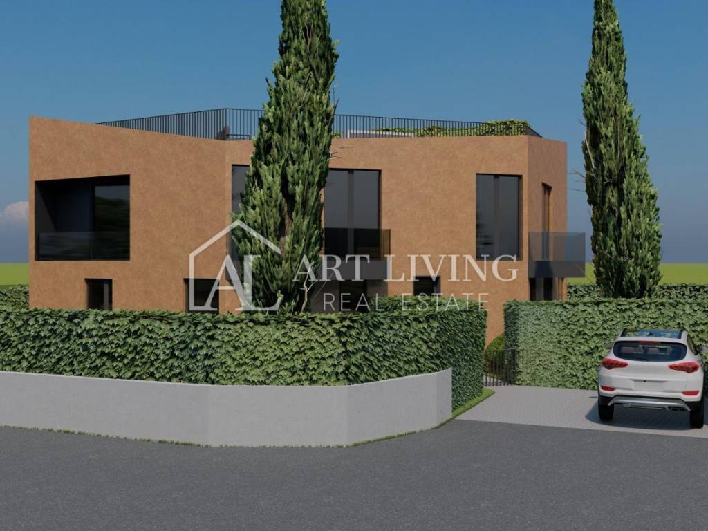 In a beautiful and pleasant setting, just 4 km from the center of Poreč and its beautiful beaches, there is a modern building with a total of five residential units. This property is an ideal choice for those who wish to enjoy a contemporary lifestyle with privacy, only a few minutes' drive from Poreč, the sea, and well-maintained beaches.