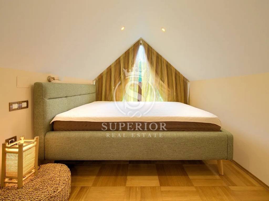 The house is situated on nearly 1,000 m² of fenced and beautifully landscaped land, designed as a garden-park with carefully selected greenery, trees and flowers. Spacious terraces allow year-round enjoyment of the outdoors, immersed in the silence of the forest surroundings.