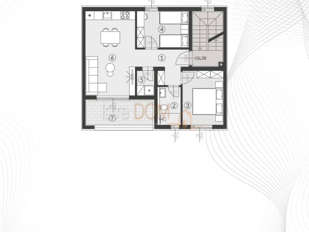 Each residential unit is provided with the required number of parking spaces according to the urban plan of the city of Pula, dimensions 2.50m' x 5.00m'. Parking spaces cannot be changed or omitted from the composition of the residential unit.