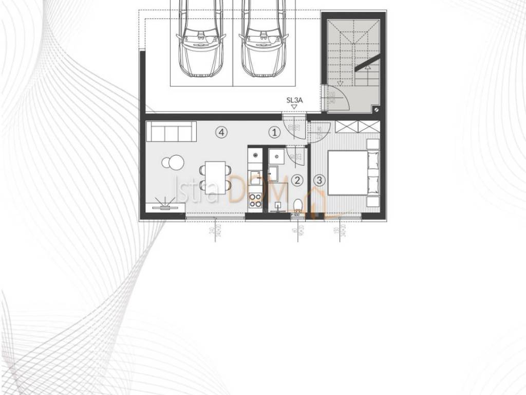 Each residential unit is provided with the required number of parking spaces according to the urban plan of the city of Pula, dimensions 2.50m' x 5.00m'. Parking spaces cannot be changed or omitted from the composition of the residential unit.