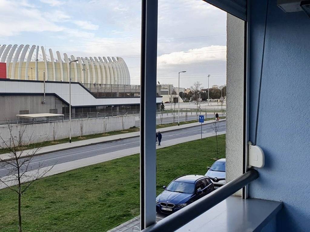 A one-bedroom apartment located on the first floor of a residential building is offered for sale. It is situated in one of Zagrebs best-connected neighborhoods (Lanište), with a view of the Arena sports center and Arena shopping center. The building has a total of 8 floors, with commercial premises on the ground floor.