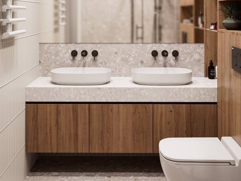 The apartment is located in a smaller residential building with a total of four units, and is characterized by a high level of privacy and a carefully designed layout. It extends over two floors ground floor and first floor with a total area of 144,85 m, connected by an internal staircase and elevator. The lower floor is intended for the living room: a spacious living area, kitchen and dining room open onto terraces and a garden, harmoniously complementing the indoor and outdoor spaces. There is also a guest toilet in this area. On the upper floor there are three bedrooms, two bathrooms, a hallway, a practical laundry room, and two rooms have access to a balcony.