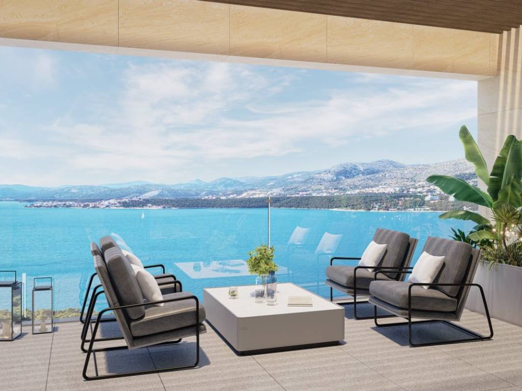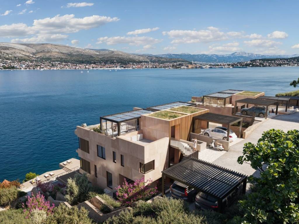 We offer a spacious two bedroom penthouse apartment with a roof terrace in the first row to the sea in an excellent location in Okrug Donji. Located right next to the sea, with a beautiful view and direct access to the sea, oriented to the north, south and east, it fits perfectly into the Mediterranean environment. The apartment is located in a residential building with a total of four apartments, and access to it is provided from the north side. The apartment is not only part of a luxury apartment complex, but a comprehensively designed space for living, rest and relaxation.