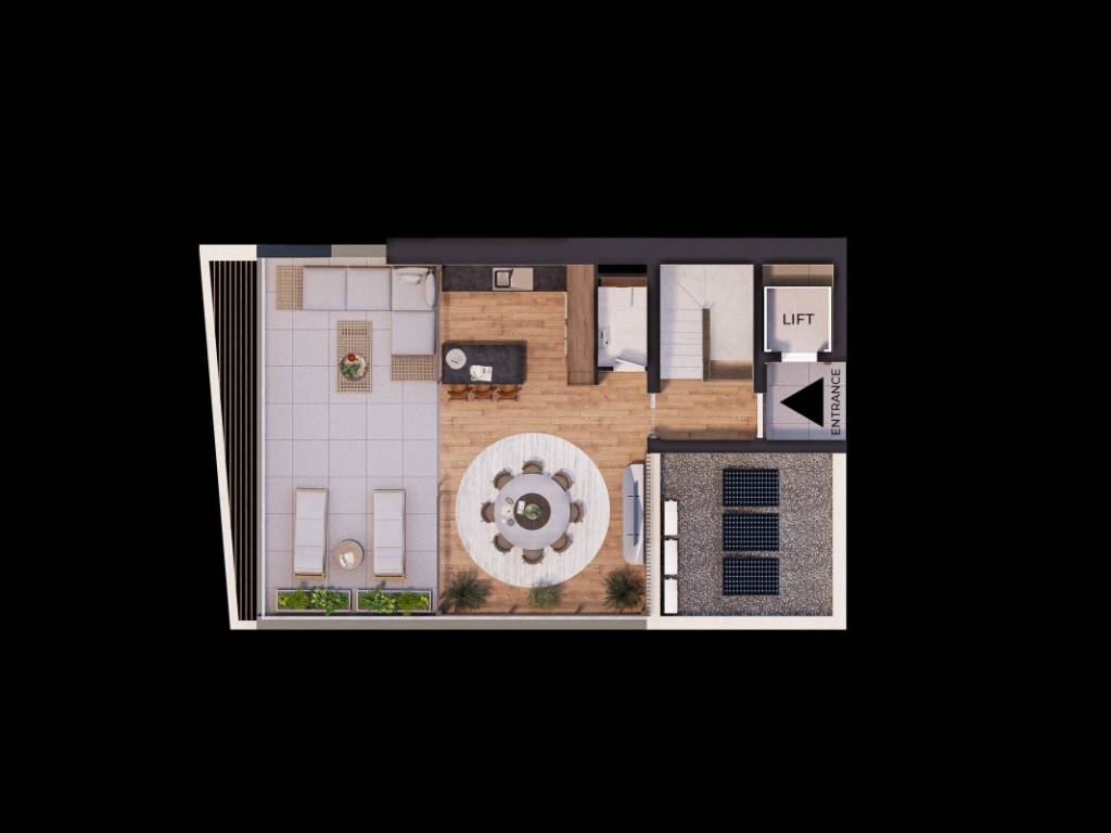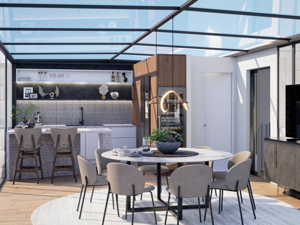 Complete privacy and the impression of staying in your own home are ensured, although the apartment is actually located in a smaller residential building with a total of four units. In addition to private facilities, the owners also have access to common areas in the neighboring building: a roof terrace with lounge seats and a view of the sea, a fitness area and saunas in the basement and a swimming pool. One covered parking space is provided for vehicles, with the option of purchasing a garage parking space.
