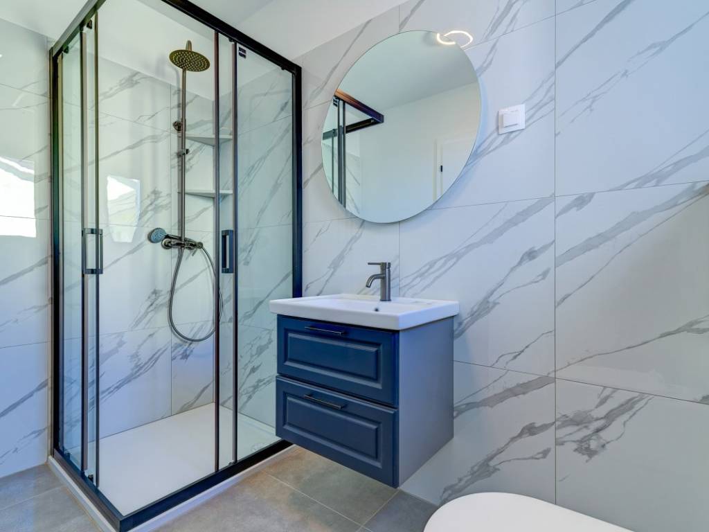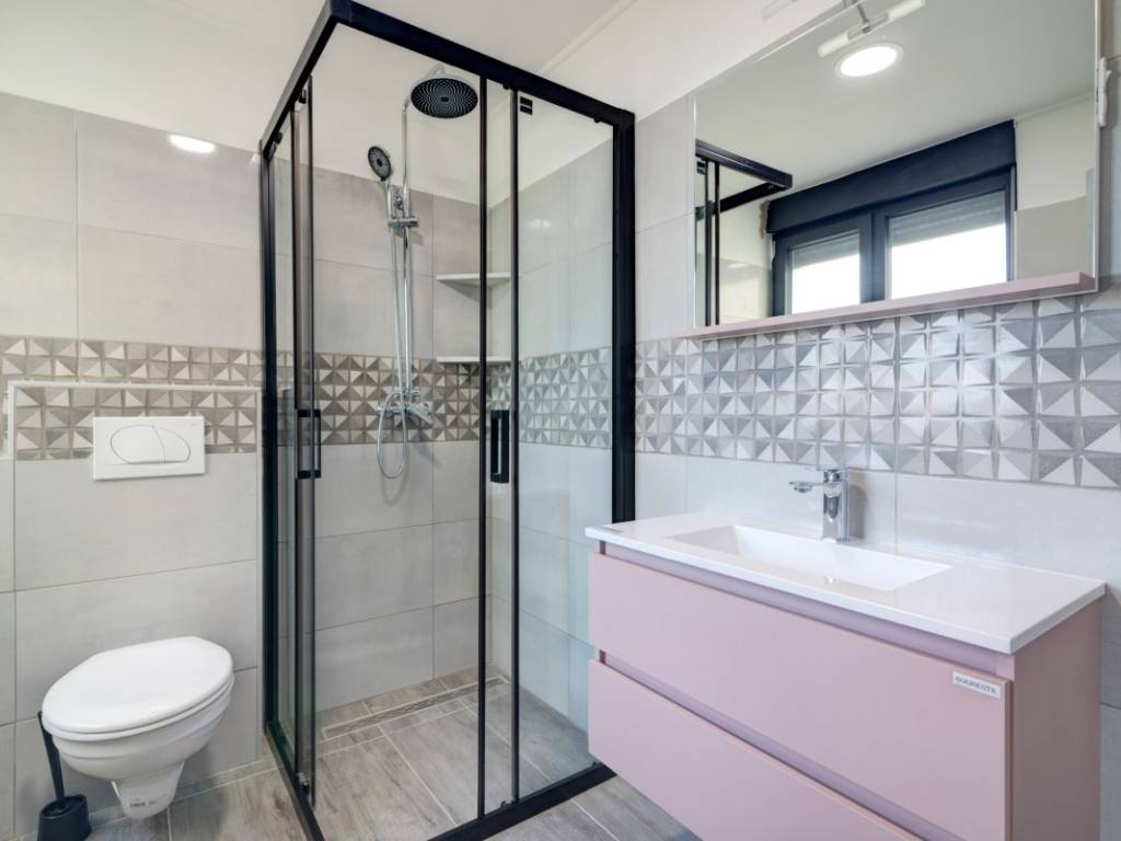 An internal staircase leads to the first floor, where there are three bedrooms, each with its own bathroom and two with their own exit to the terrace. All bathrooms are equipped with top-quality bathroom equipment and sanitary facilities.