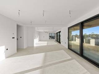 On the top floor of a luxury building, an elegant penthouse combines modern design and supreme comfort. The spacious open-concept living room is harmoniously connected to a covered terrace, while a large private roof terrace with a jacuzzi and views that stretch in all directions adds special charm.