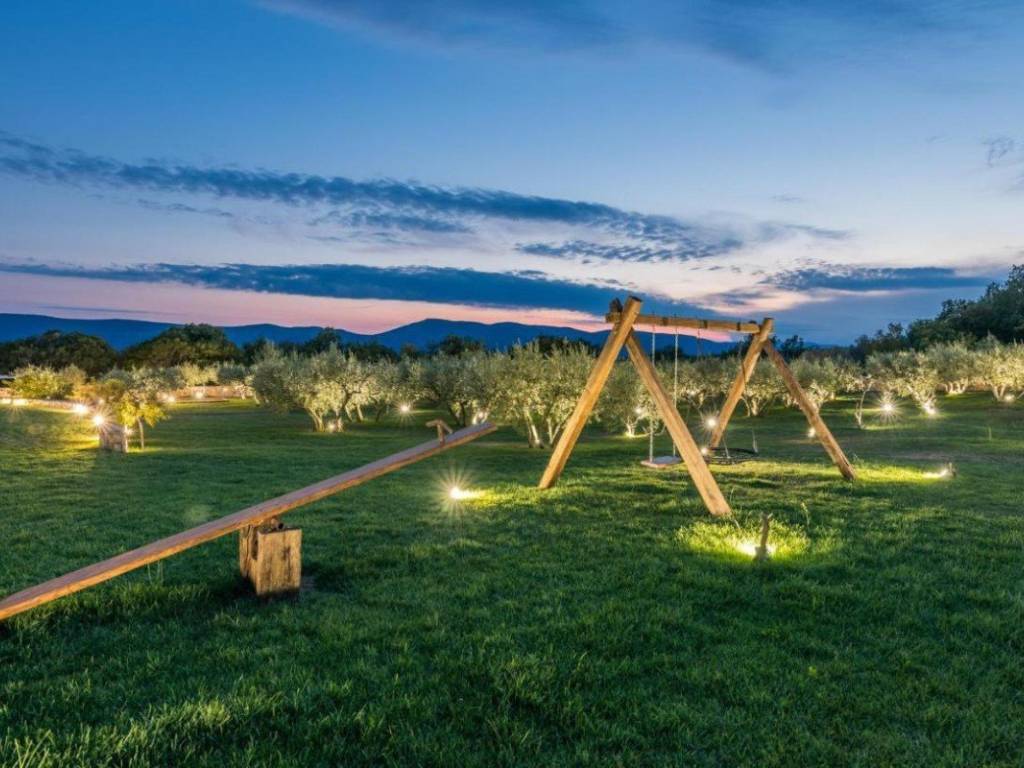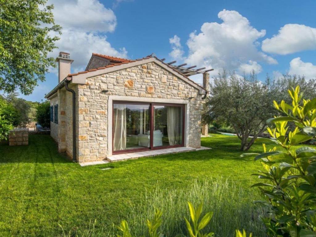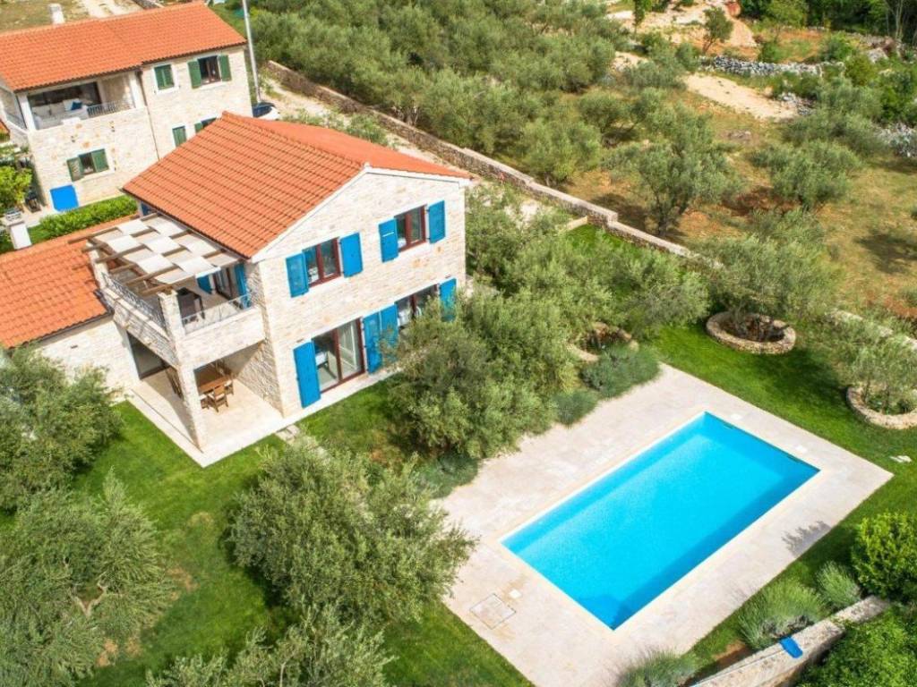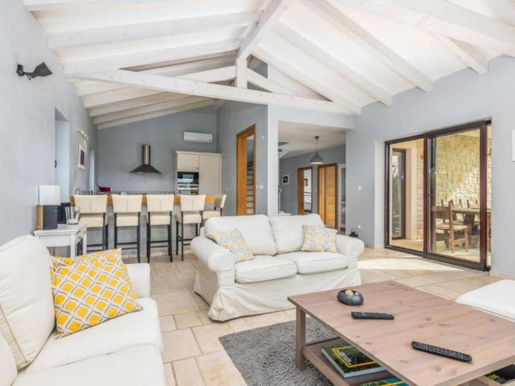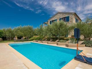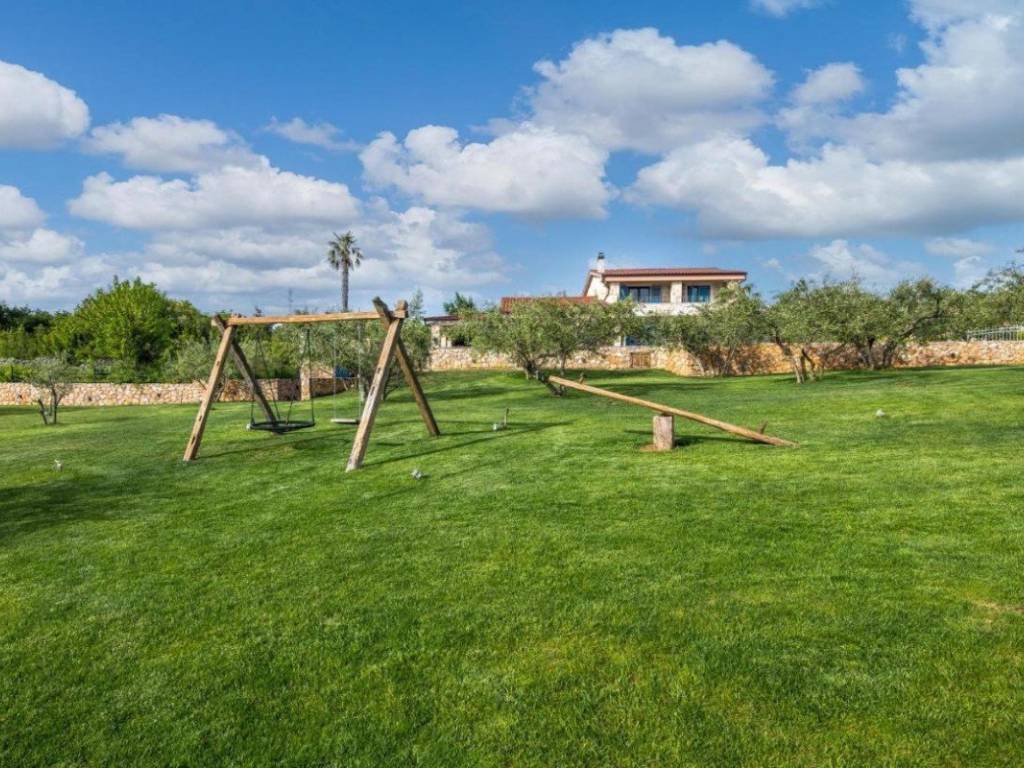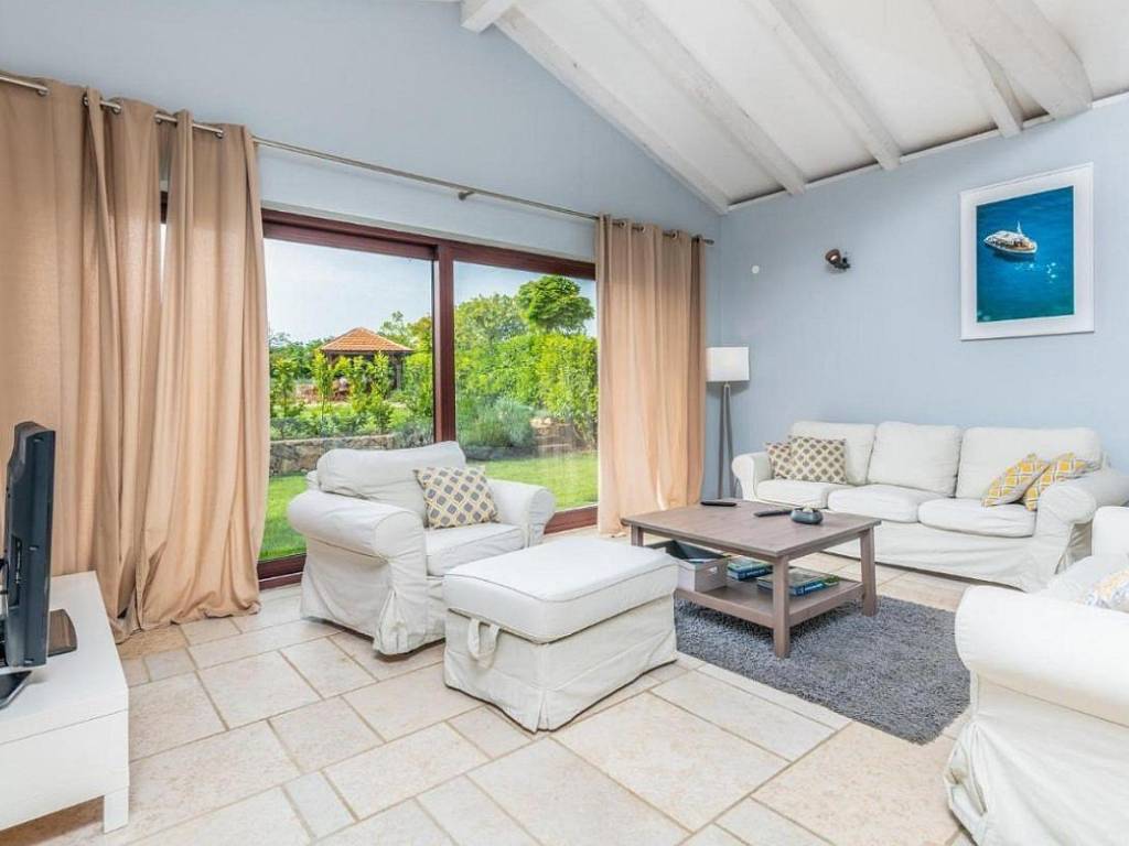 The property extends over two floors, ground floor and first floor, and consists of a living room with kitchen and dining room, four bedrooms, three bathrooms, additional toilet and several terraces. The garden is carefully landscaped, with an emphasis on privacy and functionality. It contains a swimming pool and a sunbathing area, and parking spaces for several vehicles are provided. The entire area provides a peaceful environment, ideal for a family vacation or permanent residence.
