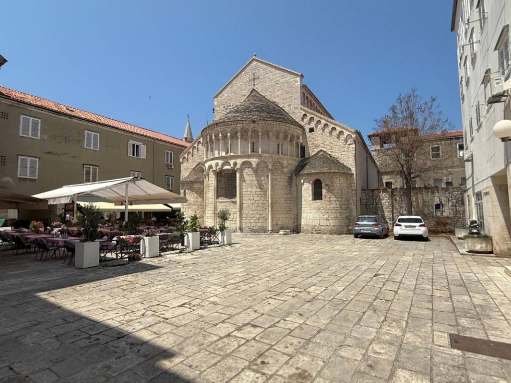 The apartment with a total area of 79 m is located in the very heart of Zadar, in an attractive location within the historic core of the Zadar peninsula. It is located on the second floor of a small residential building and is characterized by a functional layout that can be further played with.
