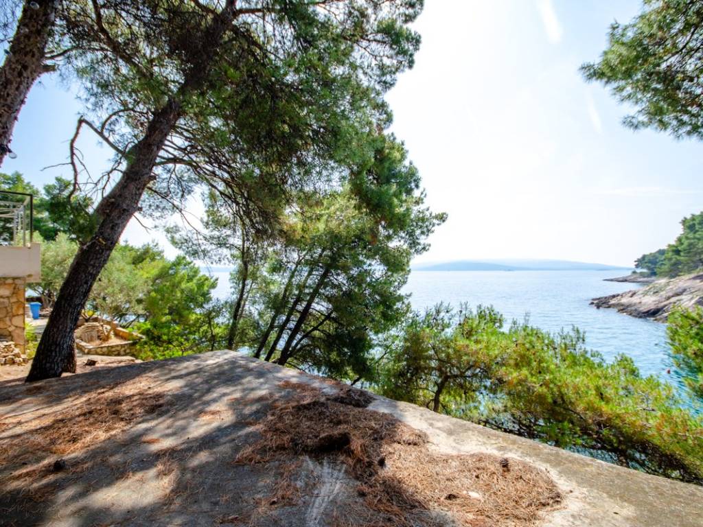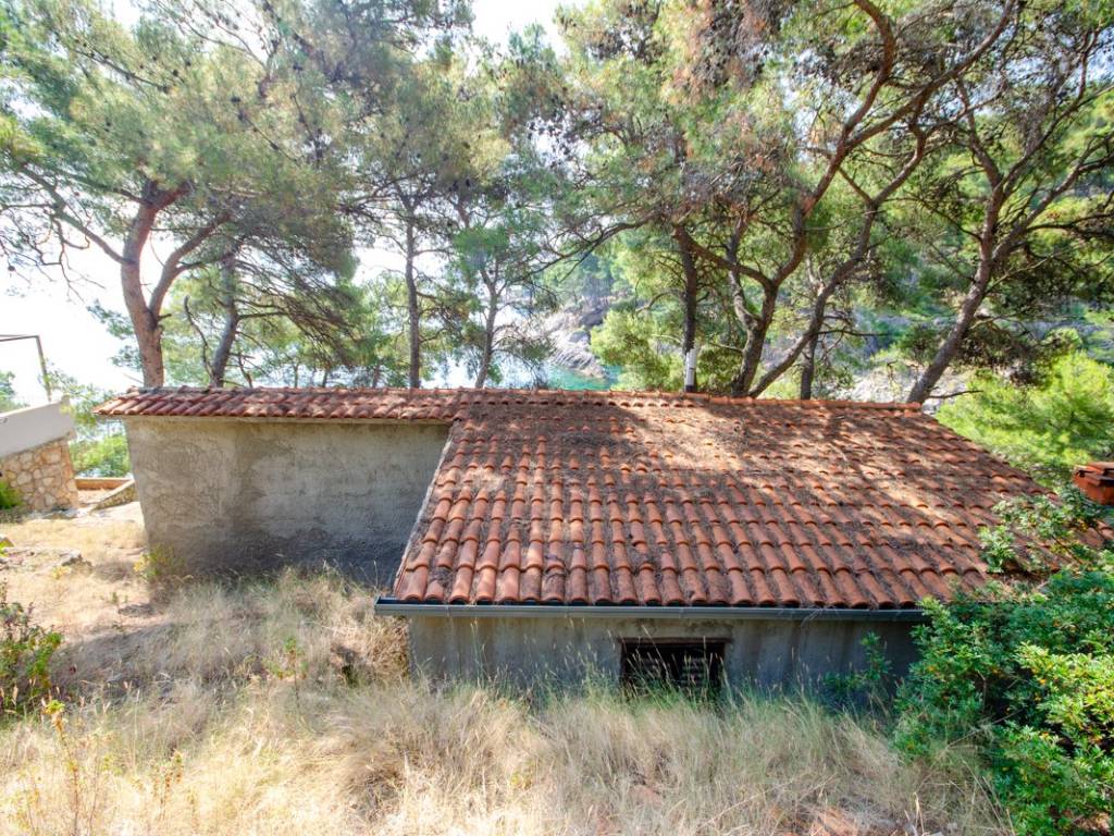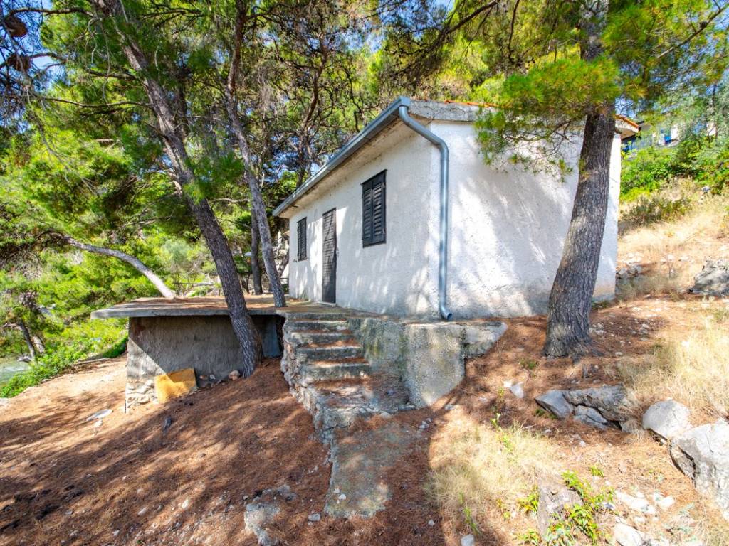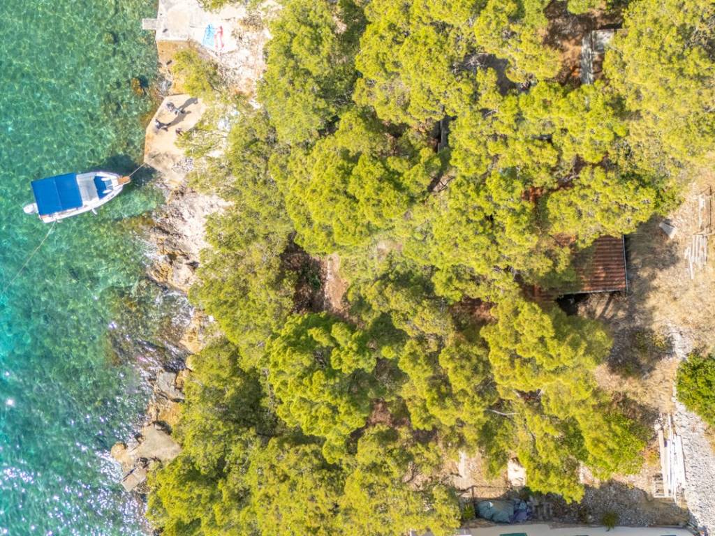 The total land area is 425 square meters, while the house itself covers 73 square meters. The property is situated in a secluded bay on the western side of the island, surrounded by dense pine forest, offering a high level of privacy and exceptional tranquility.