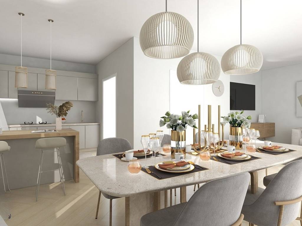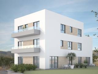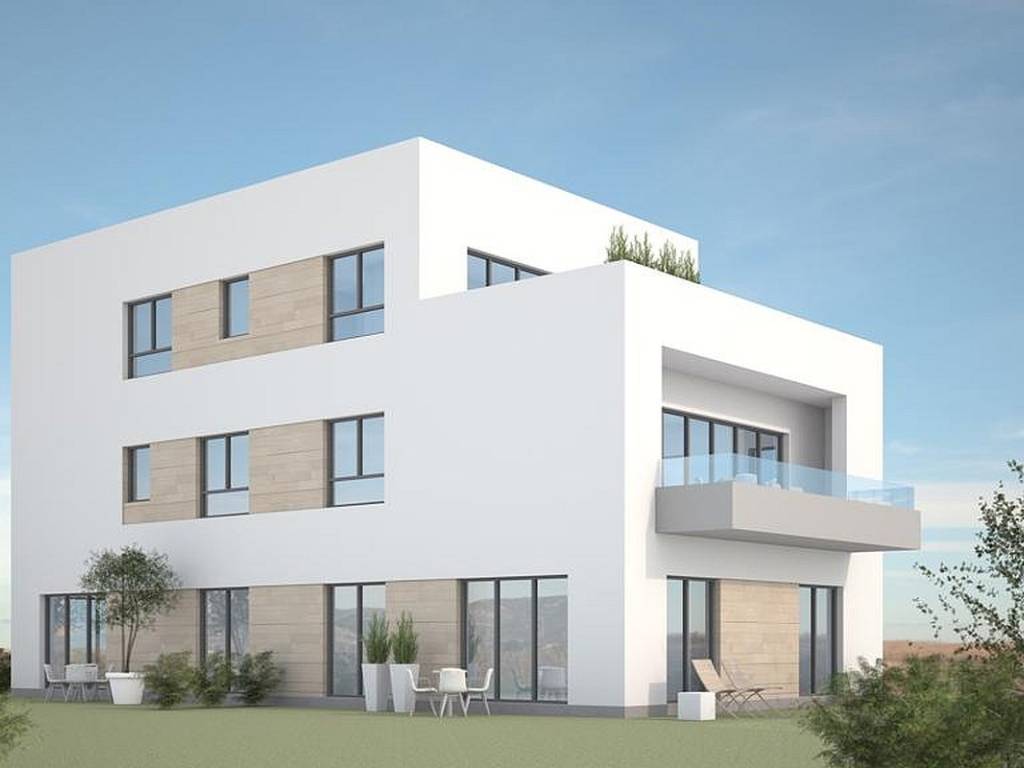 The apartment, measuring 123 m, is located on the first floor. It has an open concept, with a kitchen, dining room and living room, three bedrooms, two bathrooms, a guest toilet, a loggia and two balconies. The apartment also comes with a storage room, a garage and an outdoor parking space.