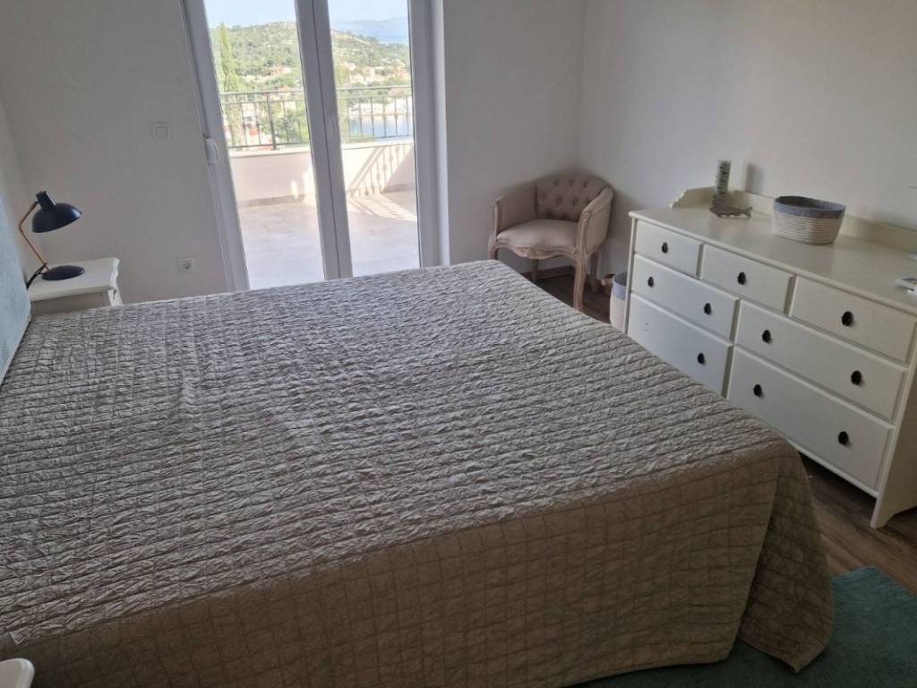 On the next floor there are three bedrooms, one of which is en suite with its own bathroom. In addition, another separate bathroom is located on this floor. Each room has access to a terrace with a beautiful view of the sea and greenery.