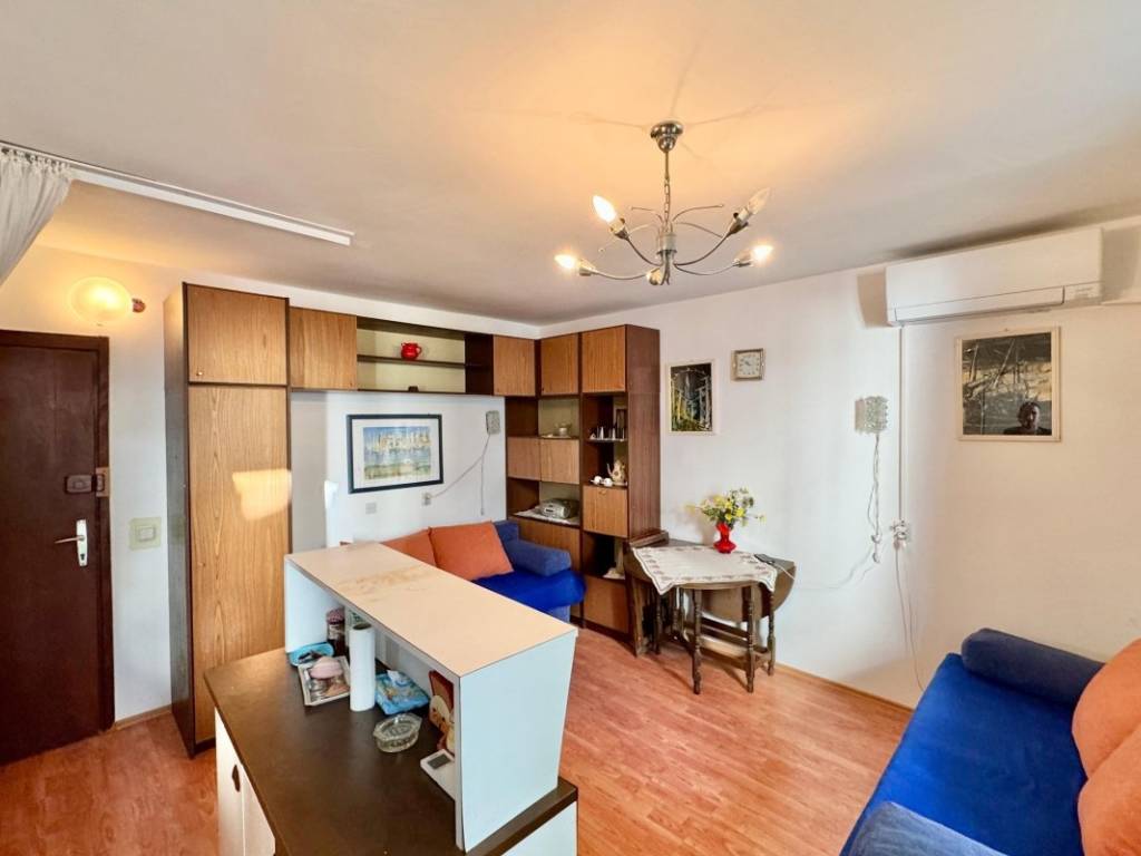 It consists of a living room with a kitchen, a small bedroom, a bathroom and a balcony of 5.43 m.