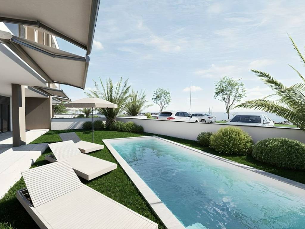 The quality of the construction is at an extremely high level, with underfloor heating and a heat pump throughout the building, Hansgrohe and Villeroy and Boch sanitary ware, schuco stop salt carpentry, burglar-proof and fire-proof entrance doors with code entry, Wi-Fi heating and cooling, water purification filter.