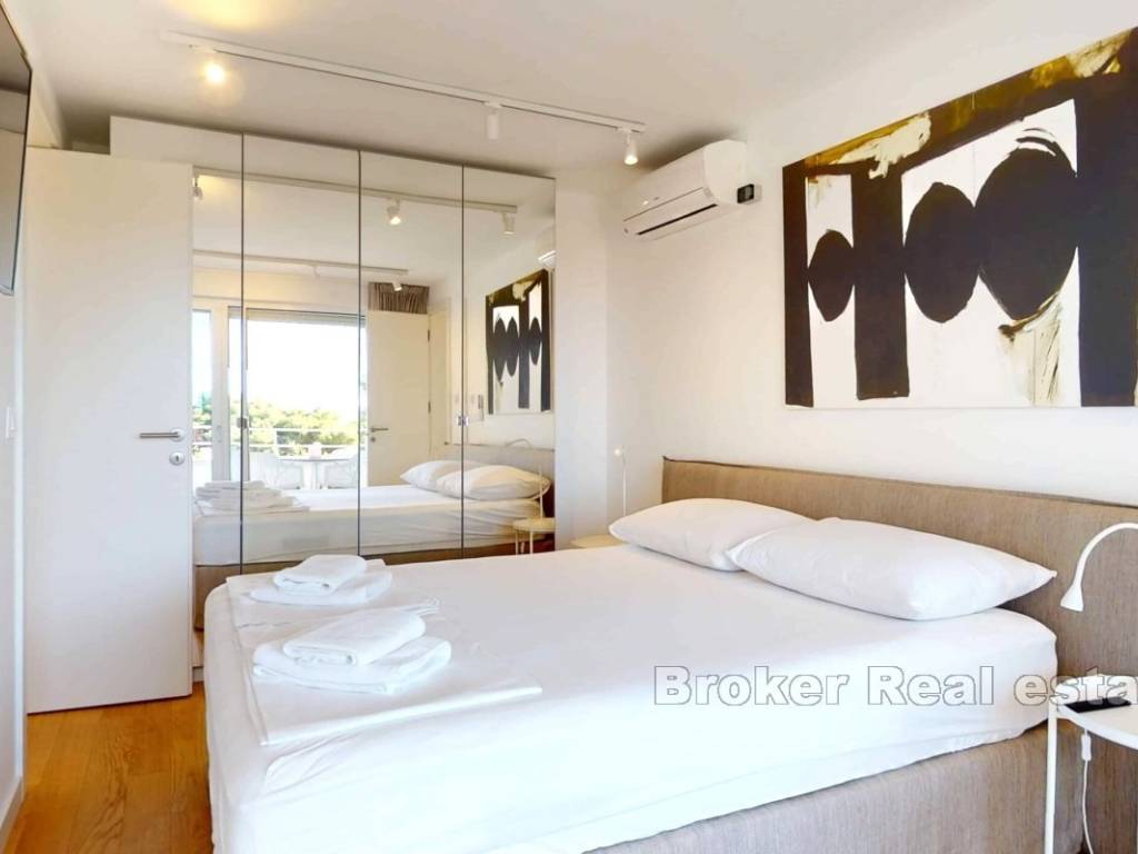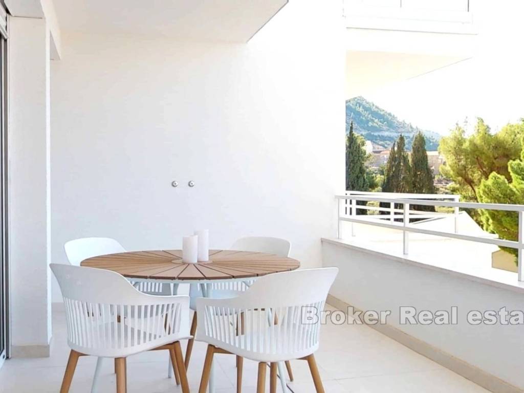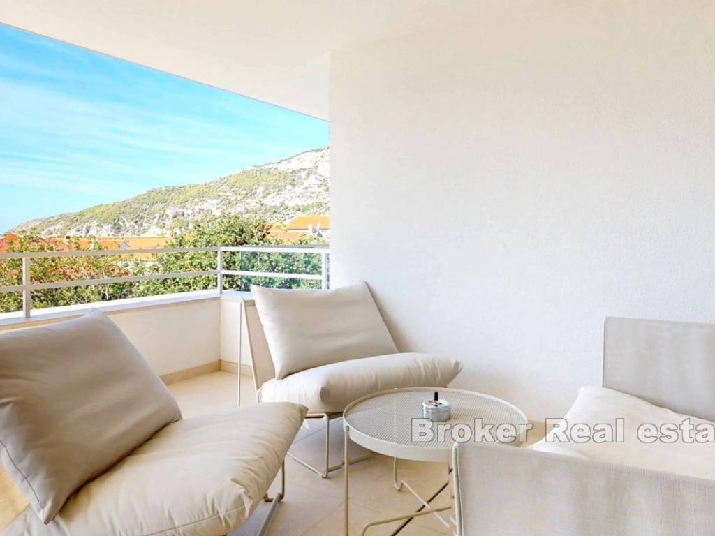 A standout feature of this apartment is the large terrace with panoramic views of the sea, Biševo, the town, a park, a lemon grove, and a pine forest, providing an additional outdoor living space.