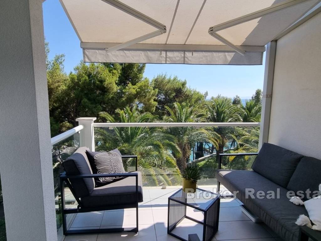 Surrounded by beautiful greenery, the property is fenced and provides complete privacy. It is only a few minutes walk from the beach. Split is 7 km away and the airport is 30 km away.