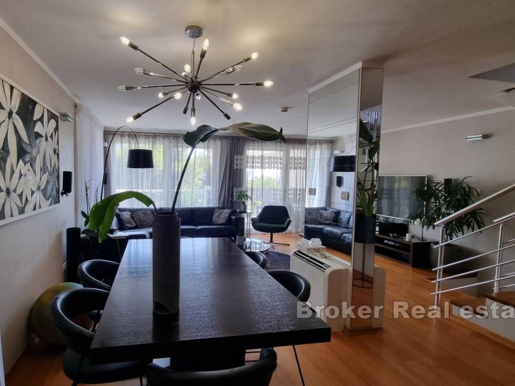 The largest residential unit is a fully furnished four-story apartment with a net area of 143.14 m.