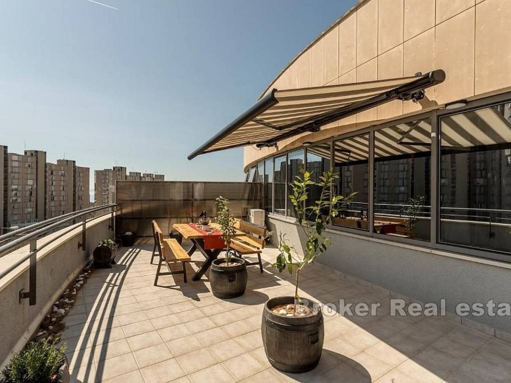 The spacious terrace of 40 m provides a unique space for relaxation, family gatherings, and socializing with friends, as well as sunbathing or even creating a mini garden. Its size and position make it a true extension of the living space, ideal for those who enjoy spending time outdoors.