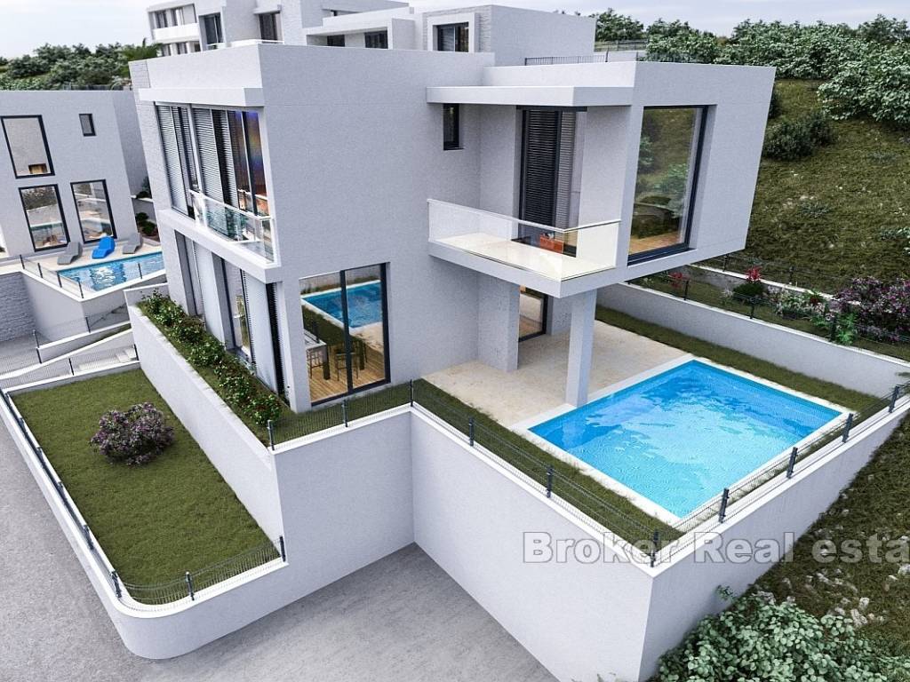 Luxurious modern villa K1 is located in a charming Mediterranean village, facing west, just a few minutes drive from Primošten and Rogoznica. This exceptional property is spread over a plot of 400 m, is part of a prestigious complex with a total of five new villas and is located in a peaceful, natural environment in close proximity to the sea and beautiful beaches.
