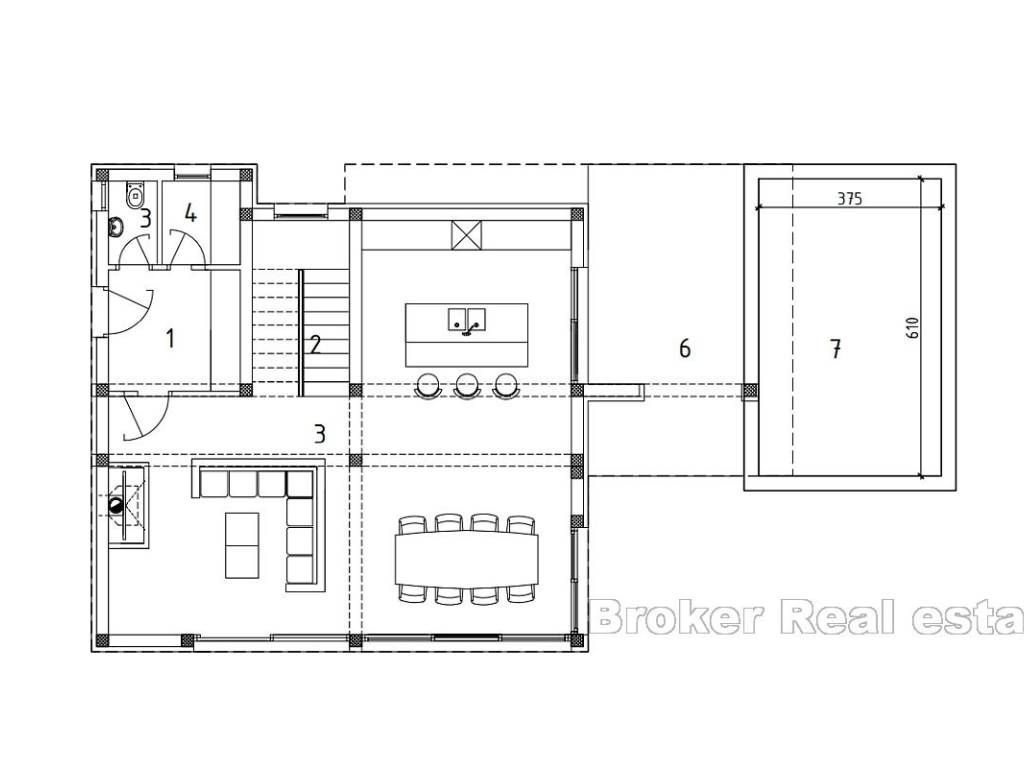 The exterior of the house is adorned with a landscaped garden with a covered terrace of 20 m and a private swimming pool of 24 m, creating an ideal space for relaxation and socializing during the warm summer months. High quality materials and equipment were used in the construction, while large windows and glass walls allow for plenty of natural light. The villa also has a private parking space and additional storage space. Whether you are looking for a home for a quiet family life or an excellent investment for tourist rental, this property represents a perfect opportunity. Split Airport is 25km away, while the center of Rogoznica is only 5km from the villa.