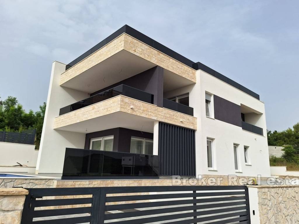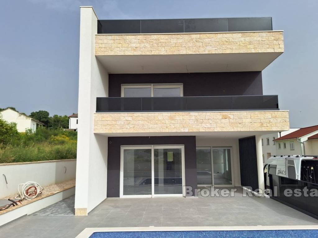 A beautiful new villa with a pool and a view of the sea, which is only 250 meters away.