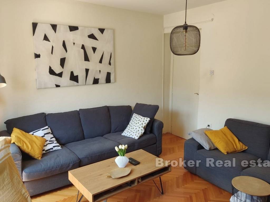 Two bedroom furnished apartment in a quiet location with total area of 95,67 m, for sale. It is located on the first floor of the house and has a north-south orientation.