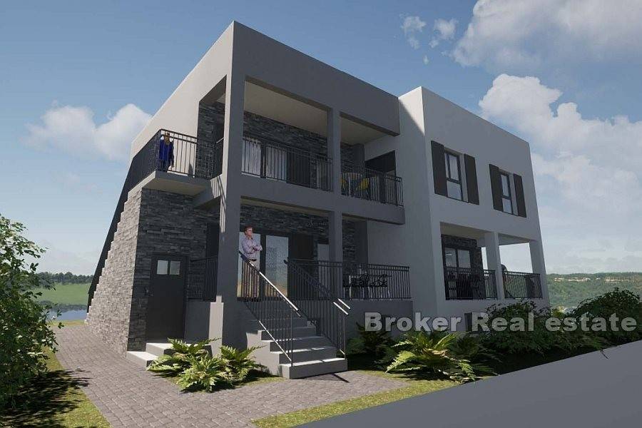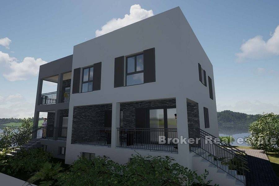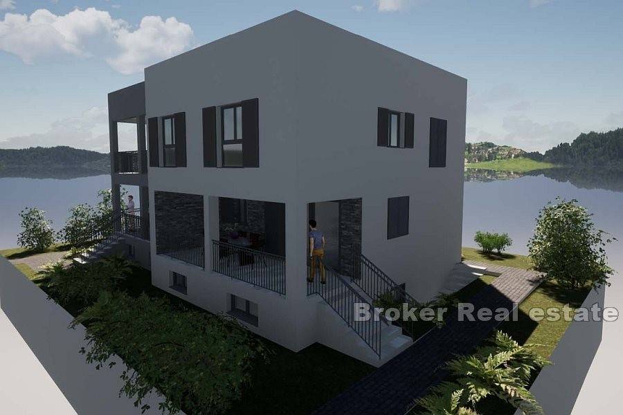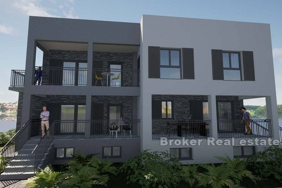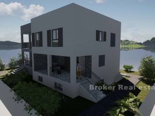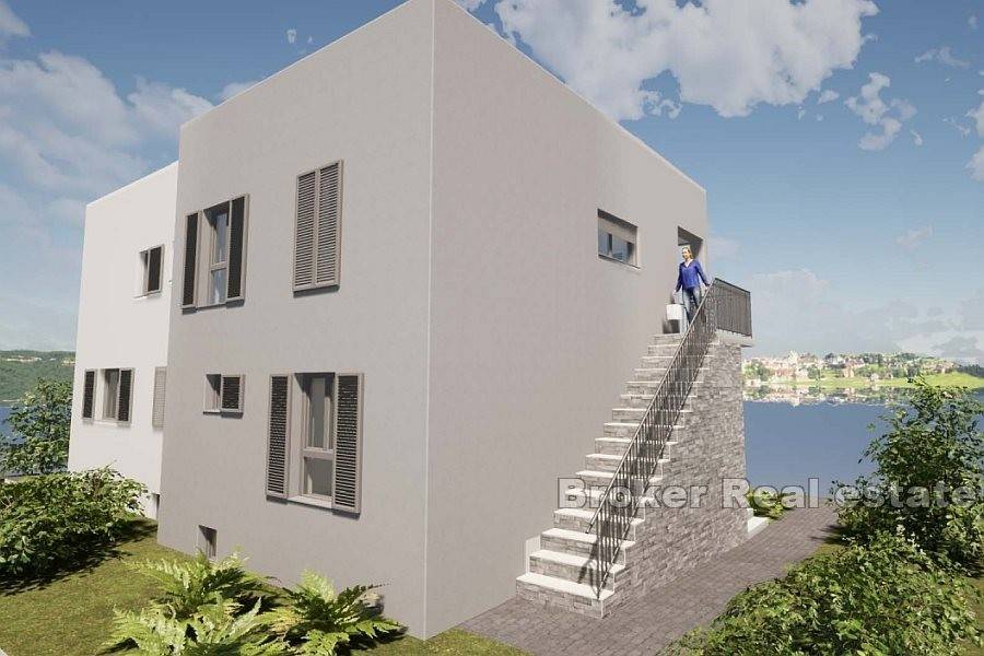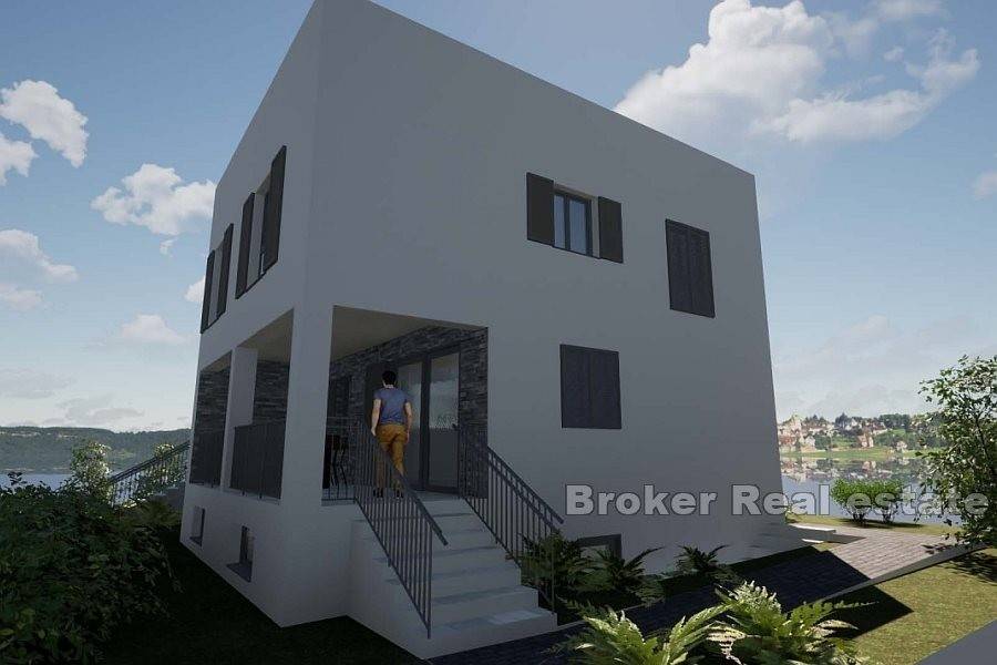 House in roh bau condition on the north side of the island of Čiovo, just a few minutes away from the center of the town. The house is located on a plot of 824 m and extends over three floors. It has a north orientation and is sold with a conceptual project. In the basement of the house there are auxiliary rooms, while above it there are two more floors with a total of two residential units. According to the conceptual project, a one bedroom apartment with a bathroom and an open living area with access to the terrace is planned on the ground floor, while the second part has a storage room. On the first floor, a three bedroom apartment can be built with a bathroom, toilet, storage room, utility room and an open living area with access to a spacious terrace. There is enough space for parking spaces in front of the building. The building needs to be rehabilitated and completed into meaningful units. It is a good investment for tourism due to the proximity of all the facilities attractive to tourists.