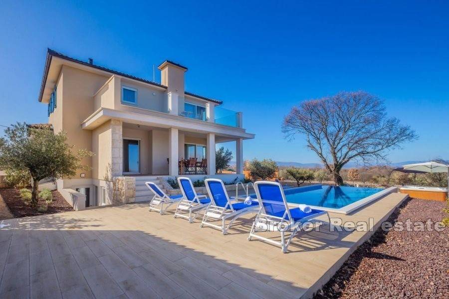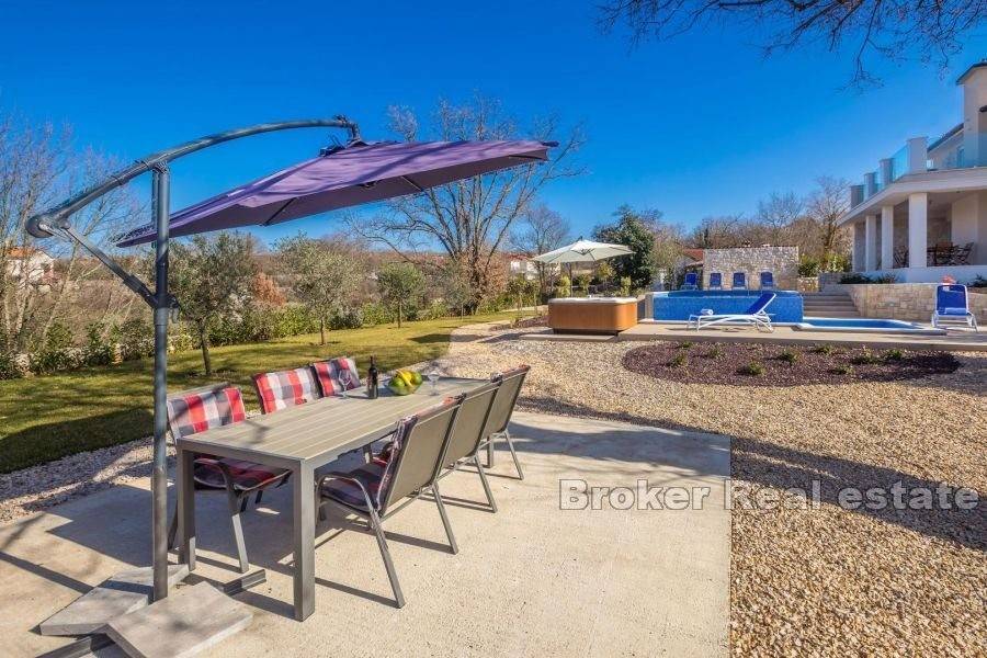 During construction, only the highest quality materials were used, the house is equipped with air conditioners, underfloor heating in the bathrooms, PVC joinery with aluminum shutters. The house is sold fully furnished and superbly equipped.
