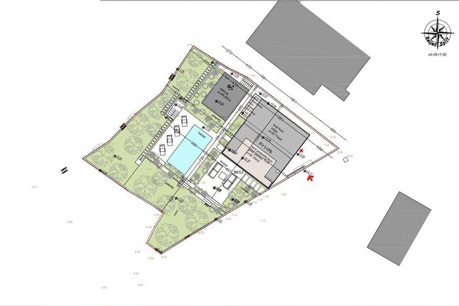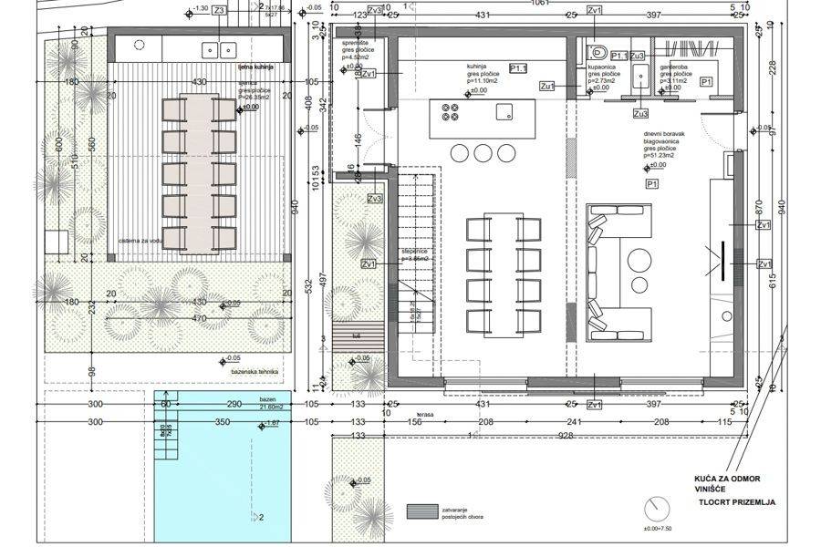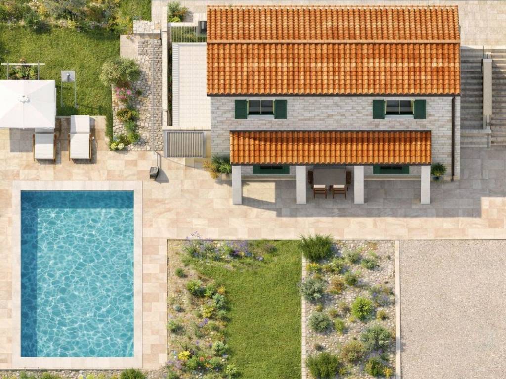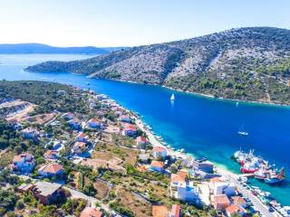 Real estate for sale on a spacious plot of land with a total area of 825 m2 with a project. The property extends over two floors with a view of the sea and the town of Vinišće. A project was created for a spacious villa with a pool and a summer kitchen. According to the project, the ground floor consists of a spacious living room that connects to the kitchen and dining room, a toilet and a wardrobe. An internal staircase leads to the second floor, which consists of three airy bedrooms, one of which has its own bathroom, on the second floor there is an additional bathroom and a balcony with an enchanting view of the sea. On the third floor there is a space for relaxation and storage. In the courtyard there is a swimming pool together with a summer kitchen and a sunbathing area. The total living area of the project is over 200 m2. The property is located in Vinišće, which is only 20 minutes from Trogir. The place has a long promenade along the sea and beaches. Just a boat out of the bay, 3 km away is the large island of Drvenik with the famous Blue Lagoon, the islets of Krknjaši and a series of small beaches. Vinišće is also known as a great place for fishing. The price is not fixed.