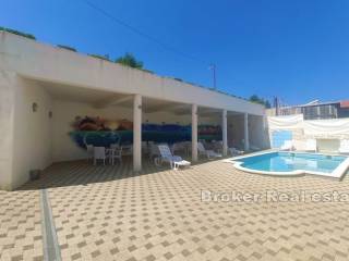 The central position is occupied by a wonderful swimming pool, and a covered area with chairs, tables and sunbeds to enjoy in the summer by the pool.