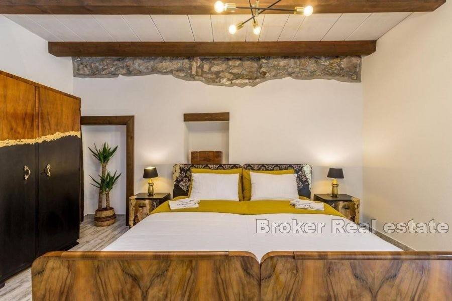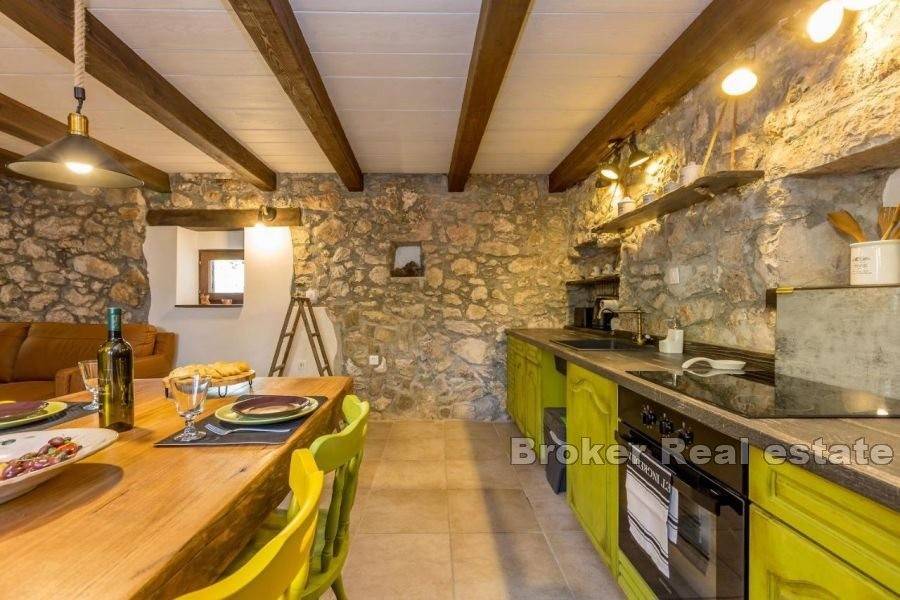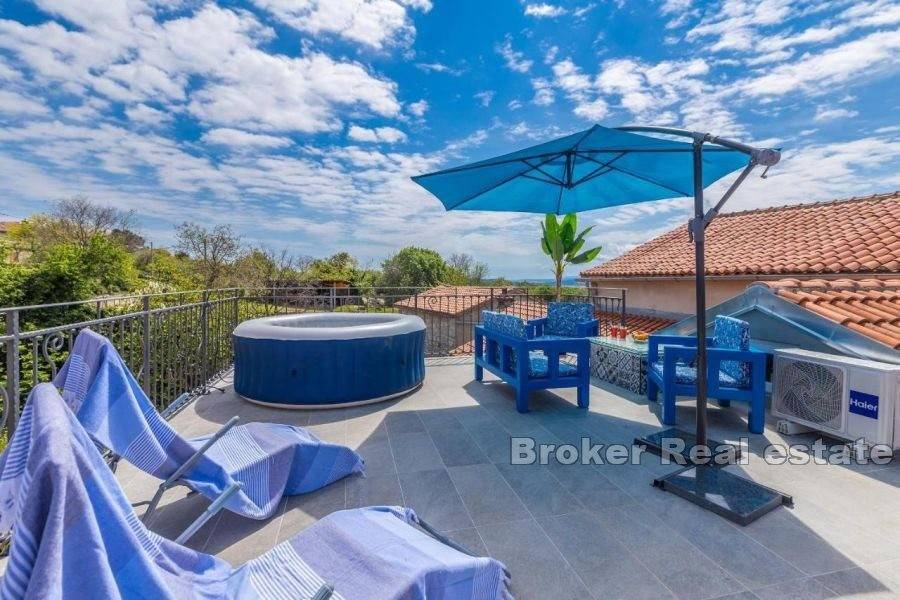 For sale is a carefully renovated stone house located near the famous town of Krk. The house is located in an excellent location in the picturesque surroundings of Krk, known for its natural beauty and historical significance. This semi-detached house covers 80 m2. On the ground floor there is a spacious living room, kitchen, bathroom and laundry room. There are two bedrooms and a bathroom on the first floor. The roof terrace consists of a jacuzzi and a space for socializing with a view of the sea. The house also has two parking spaces. The property boasts a number of outstanding features, making it an exceptional choice for discerning buyers looking for a harmonious blend of tradition and contemporary living.