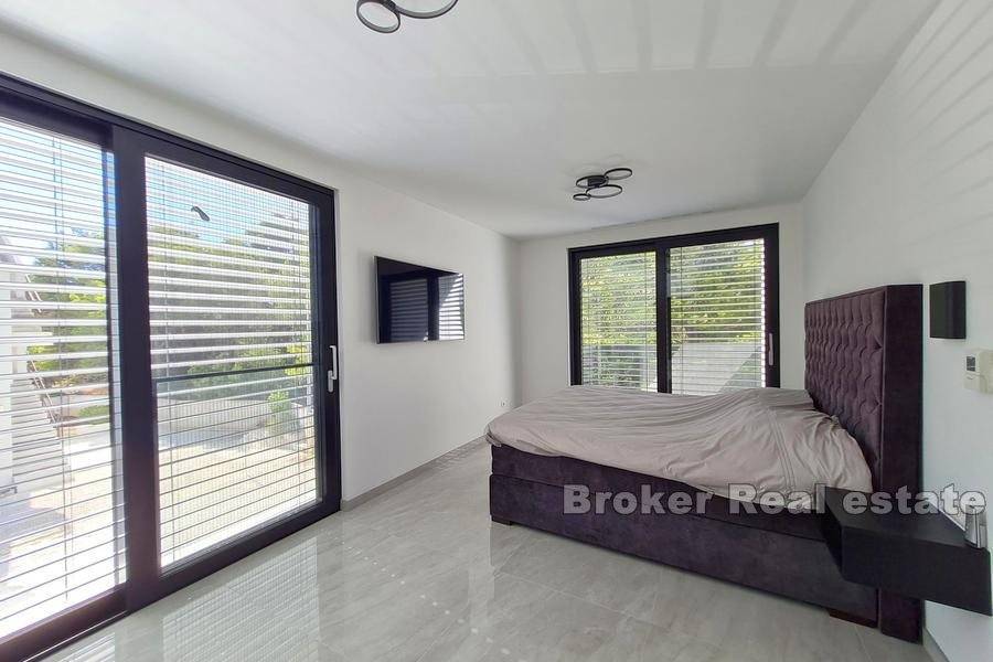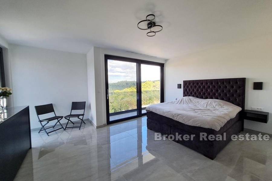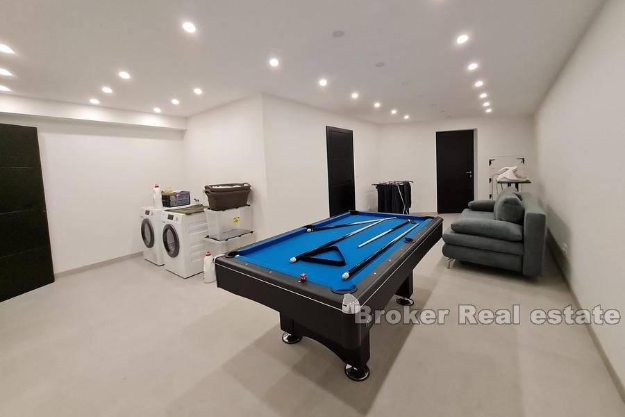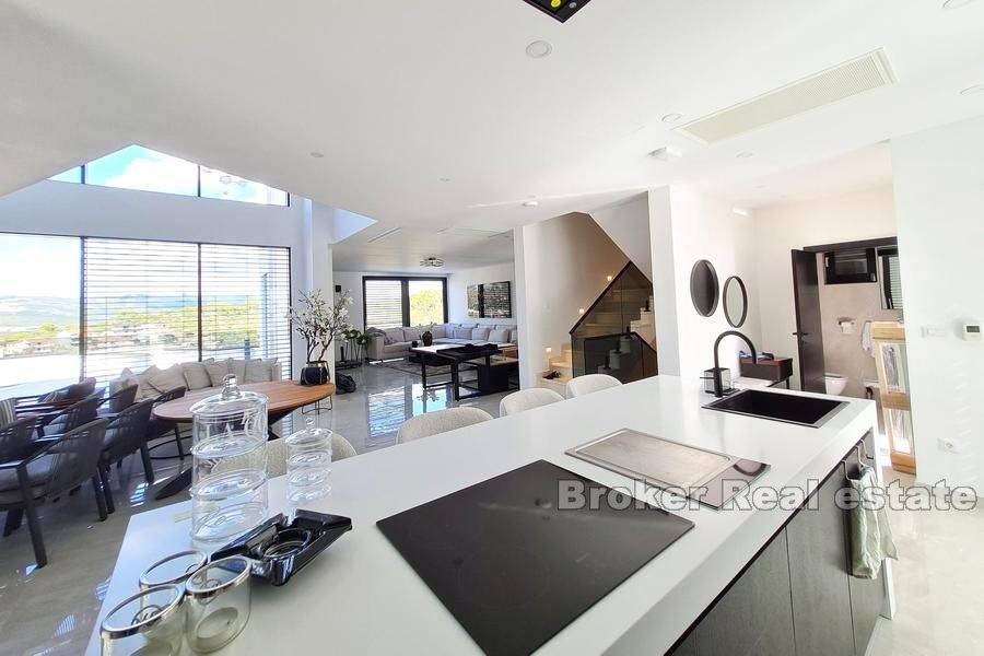 All furniture is made to measure or ordered from the best European suppliers, household appliances are Miele brand, the villa is equipped with electric shutters, schuco joinery with triple glazing, the facade is mineral wool 15cm thick, while heating and cooling via Daikin heat pump, and in addition, water floor heating is installed in some places.