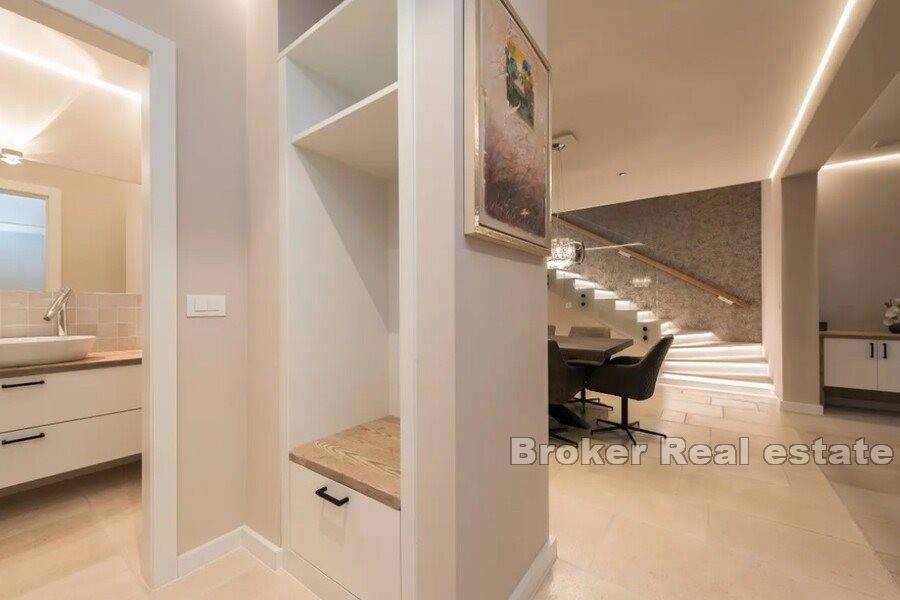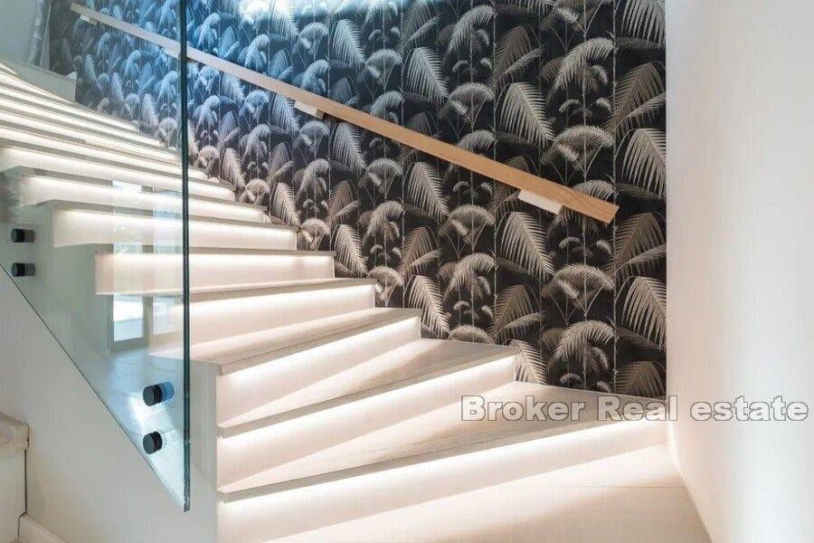 A garden architect with a studio in Vienna was in charge of arranging the garden, who carefully landscaped the estate with old olive trees, palm trees, tangerine and lavender trees. The irrigation system and the security system with cameras make it easy for the new owners to maintain the property in case of absence.
