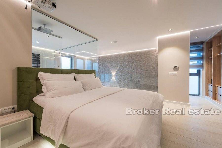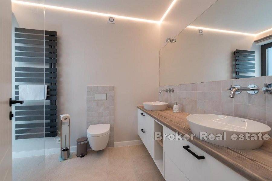 On the first floor of these two villas, there are designer rooms with their own bathrooms. In one villa there are 3 spacious rooms with bathrooms, while in the other villa there are 2 master suites.