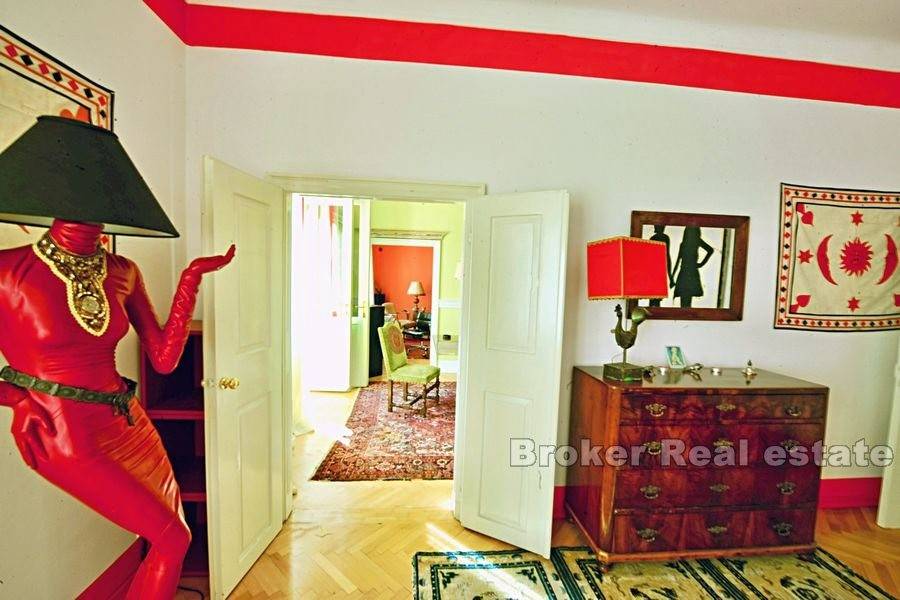 The apartment is located on the 3rd floor walk up. There is a possibility of installing an elevator in the future. It has 107 m2 of living space with a ceiling height of 3,20m.