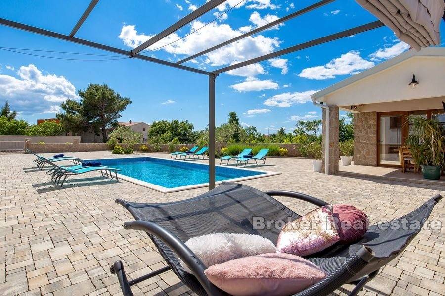 Due to all the included facilities, the house is ideal for family getaway or tourism purposes. The pleasant and peaceful landscape in which the house is located in no way affects the distance of essential amenities for living. The location of the property is really interesting because it offers a view of Velebit from the north and the sea from the south.