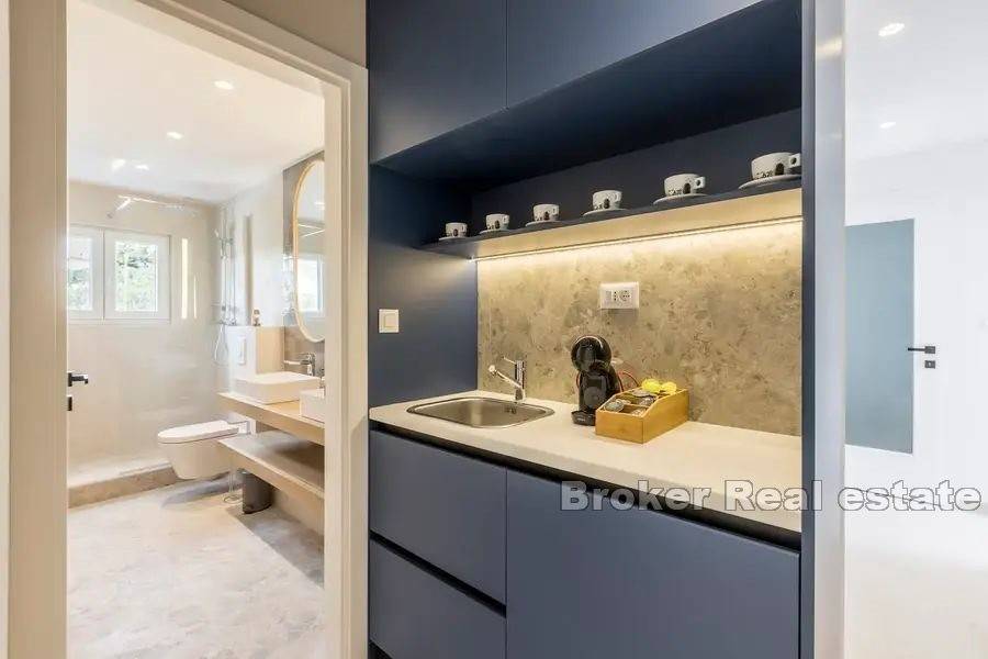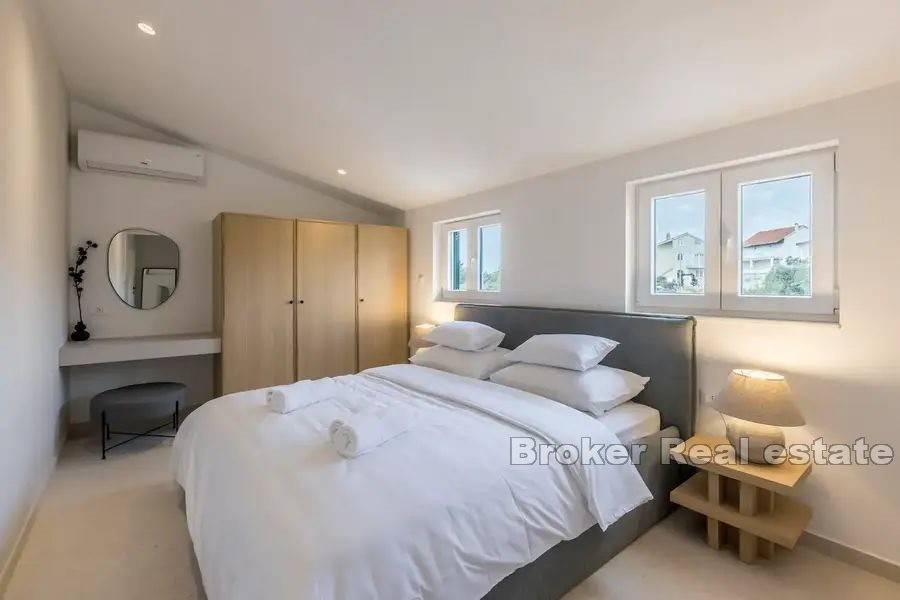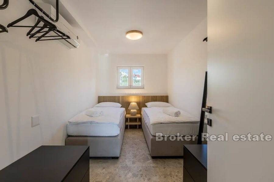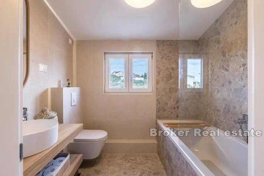 The villa is located in a quiet location near all the necessary facilities for living. 210 m from the sea, 5 km from Trogir, 10 km from Split Airport and 30 km from Split.