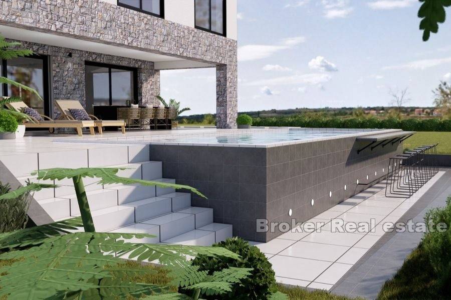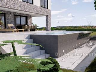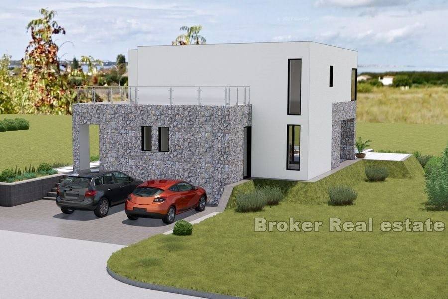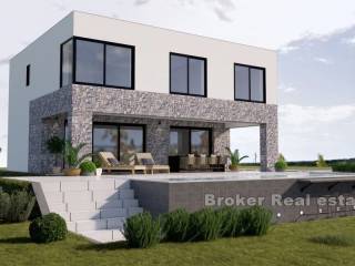 Modern villa with pool located in a quiet place with natural beaches and coves away from urban centers. The villa with a gross living area of 172m2 is located on a plot of 495m2 and is spread over two floors ground floor and first floor.