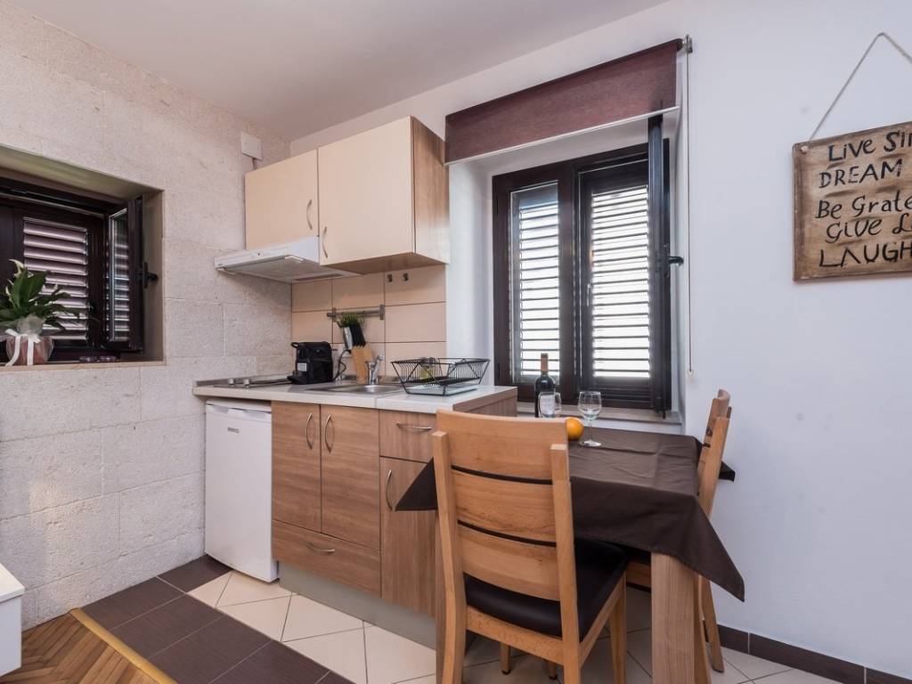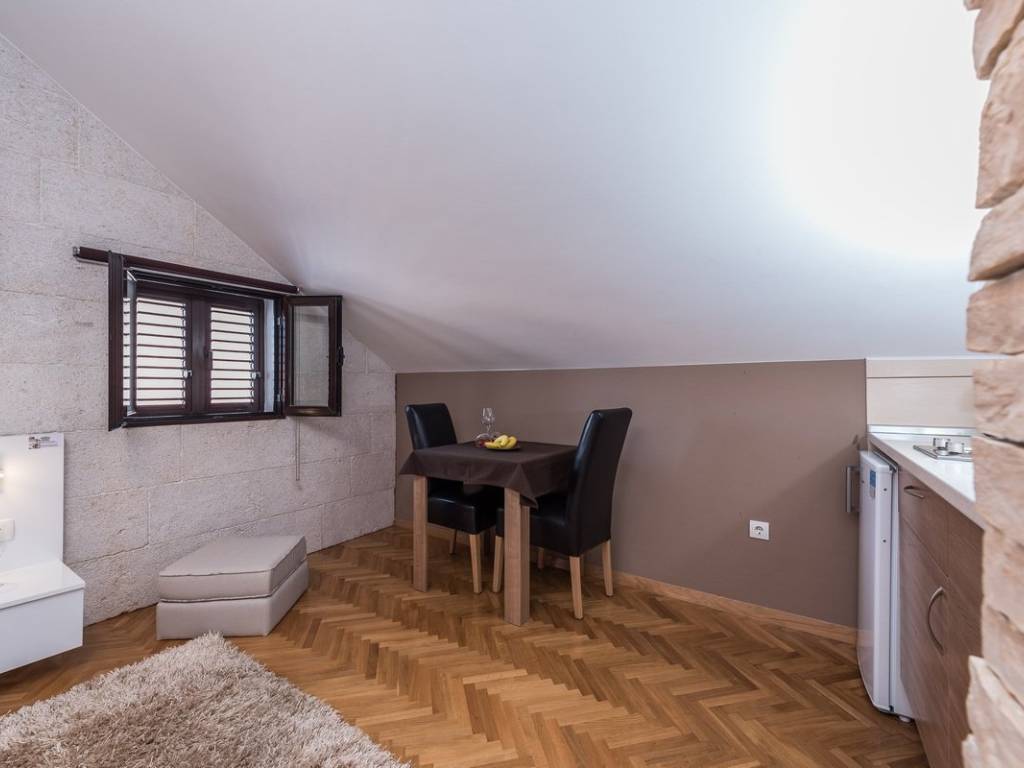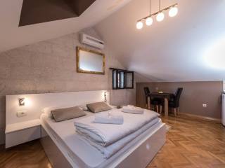 Beautiful aparthotel located in the city center in the oldest building on the peninsula. The detached building has been built since 1300 and was completely renovated in 2009. The hotel includes six modernly designed apartments and two additional spaces that can be renovated into two more apartments. The apartments consist of a bedroom, kitchen, dining room and bathroom with toilet. Each room is newly renovated with top quality materials and equipped with air conditioning. Regardless of the year-round operation, the hotel is renovated and refurbished every year to be completely ready for operation, and the last major renovation was in 2018. In front of the building there is a public parking lot, six of which are used by the hotel.