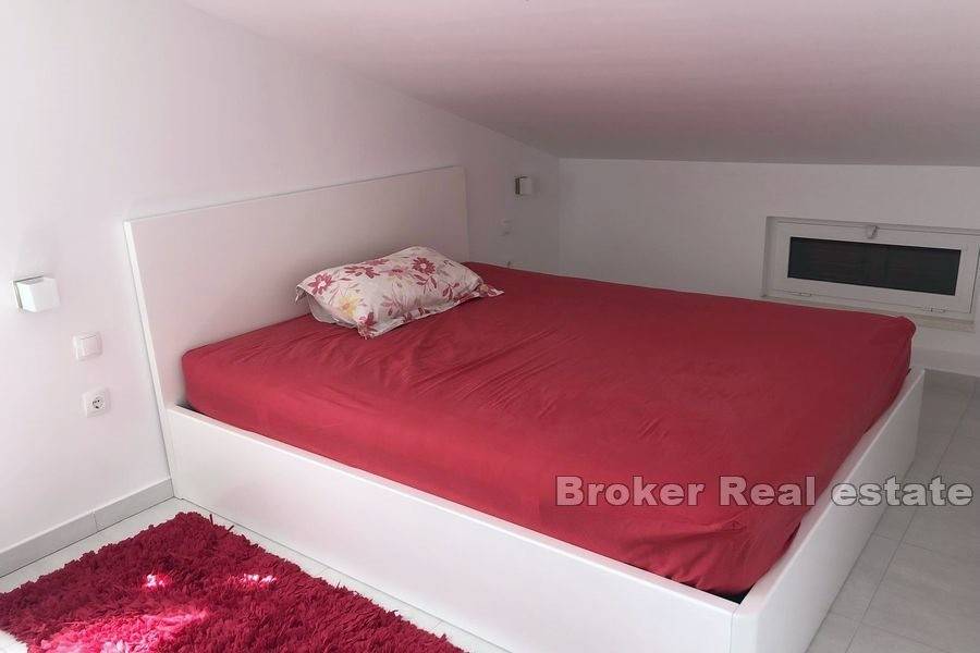 On the 1st floor there are two apartments of similar layout with living room and kitchen in one room, bedroom and bathroom. In the attic there is an apartment that has never been rented, and consists of a kitchen, two bedrooms, bathroom and a large terrace of ideal for those who want to enjoy the sun, sea, silence, untouched nature either for living or tourist purposes with excellent business results.